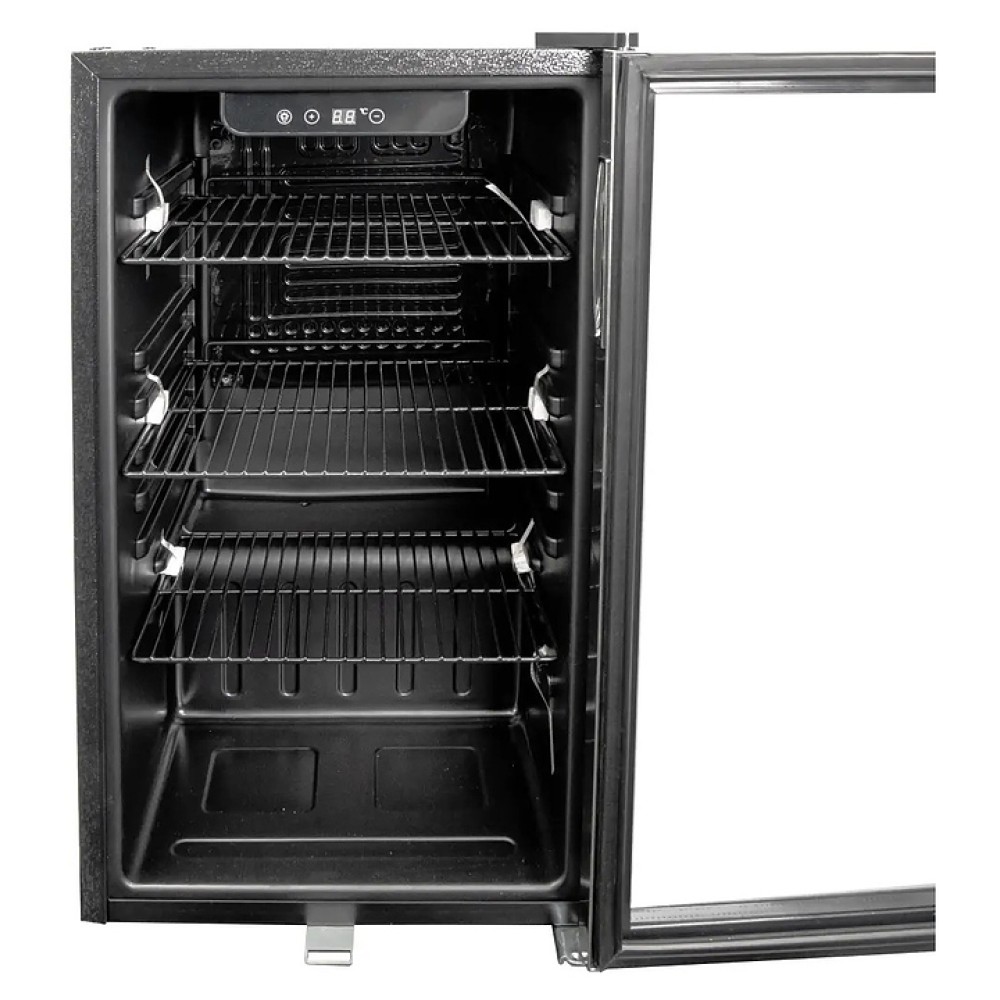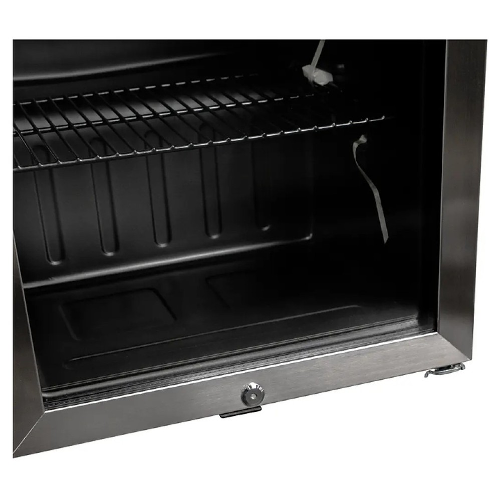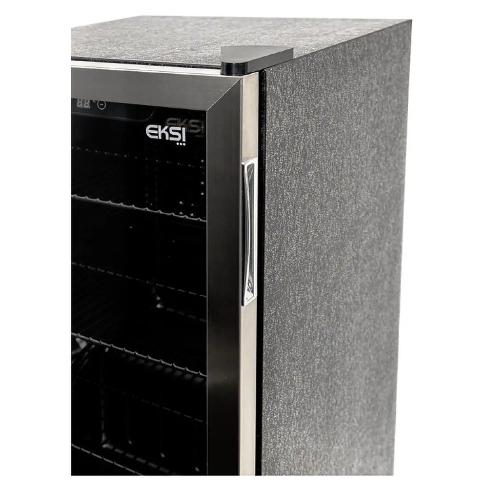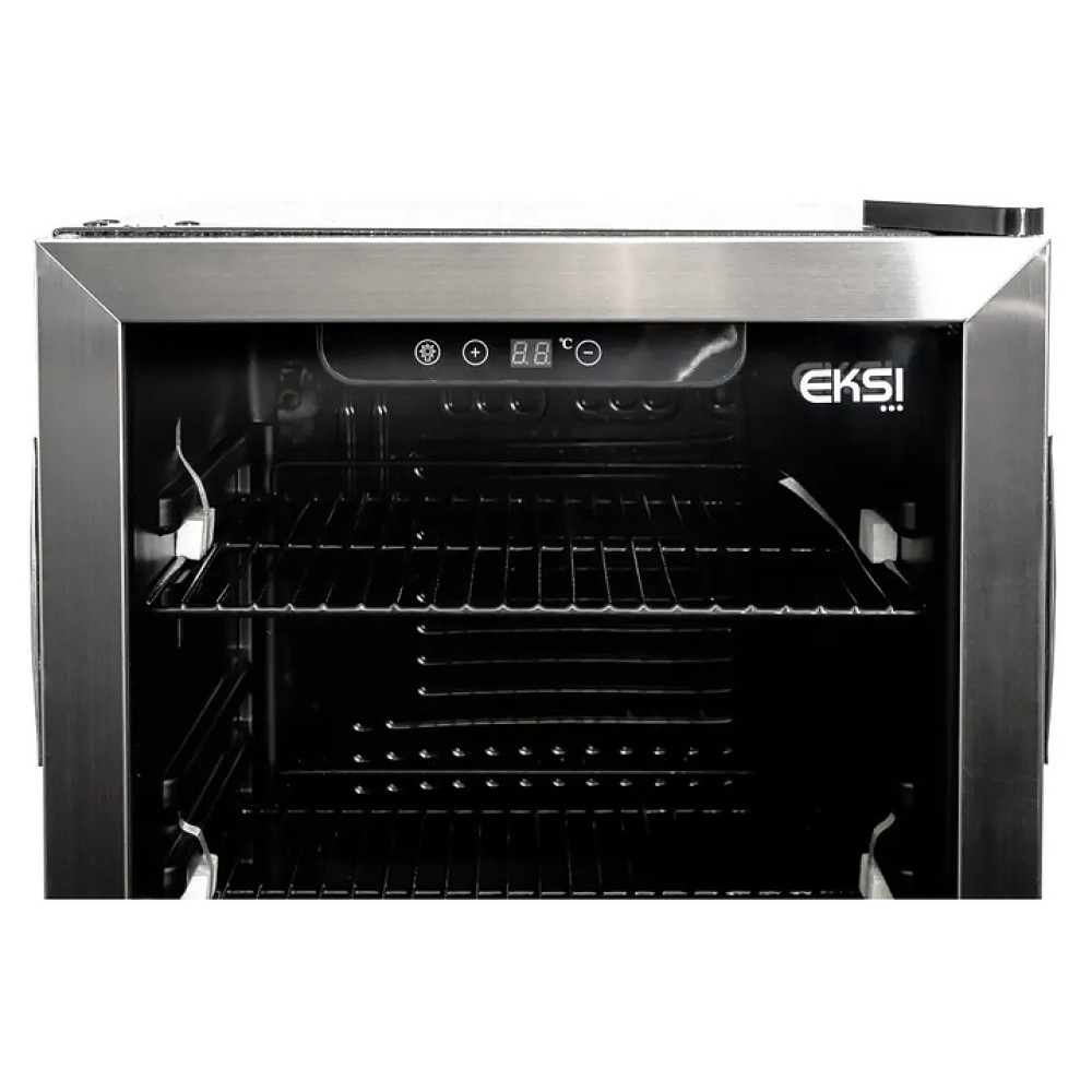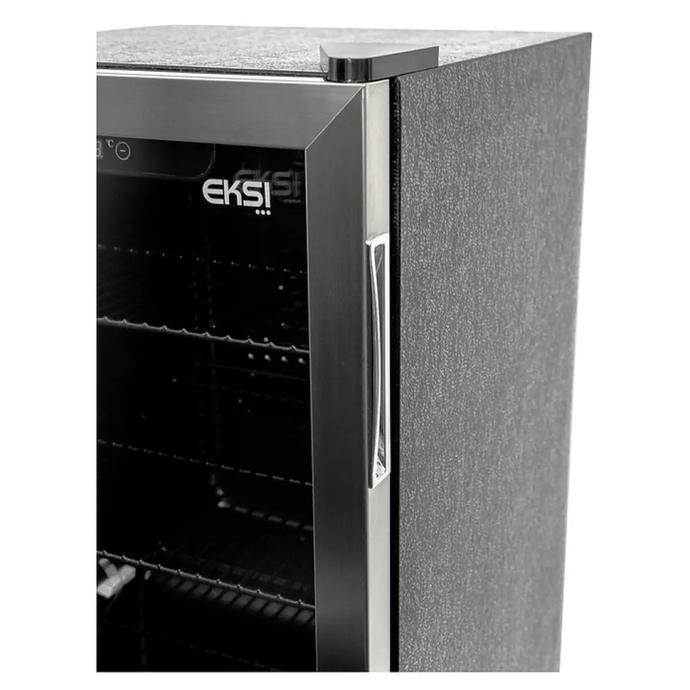 Барный холодильный шкаф EKSI BRG90 используется на предприятиях общественного питания и торговли, барах, отелях и гостиницах для демонстрации, охлаждения и длительного хранения продуктов и напитков. Модель оснащена 3 решетчатыми полками, тонированной стеклянной дверью с двойным остеклением, поддоном-каплесборником на задней стенке и регулируемыми ножками. Рама двери выполнена из нержавеющей стали.