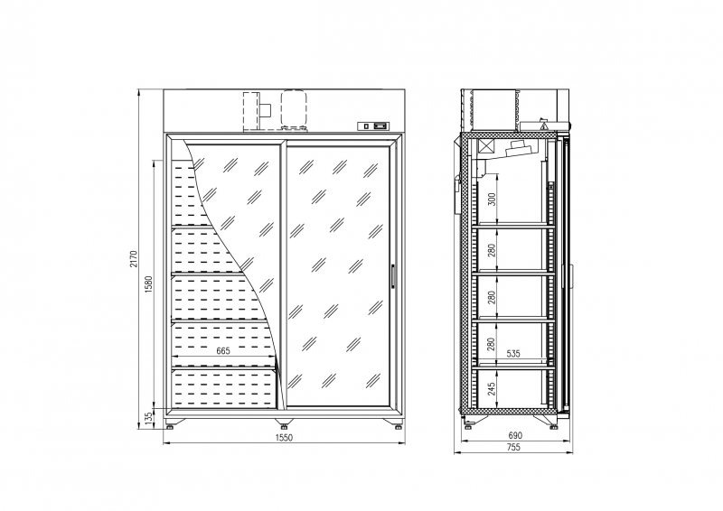 | Вес (без упаковки)210 кг | Исполнение дверипрозрачная | Объем1400 л |