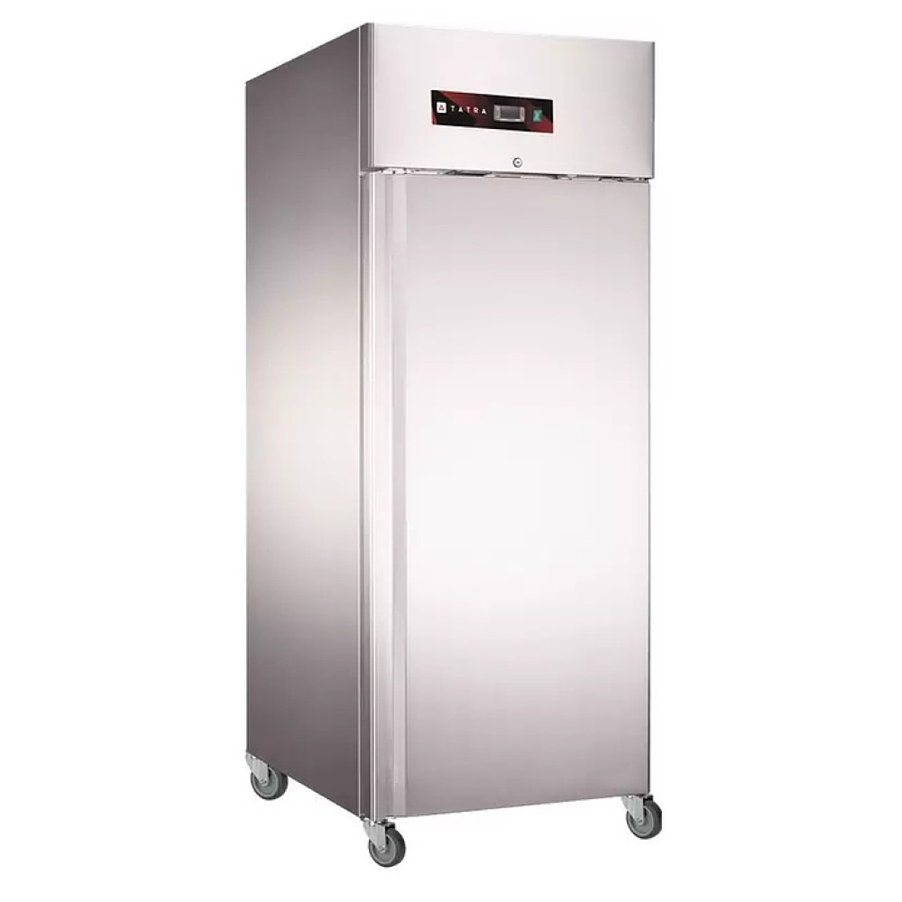 Холодильный шкаф Tatra TRC700 TN предназначен для демонстрации, охлаждения и кратковременного хранения продуктов и напитков на предприятиях общественного питания и торговли. Модель оснащена встроенным холодильным агрегатом с верхним расположением, колесами, замком и глухой дверью. Корпус и камера выполнены из высококачественной нержавеющей стали.