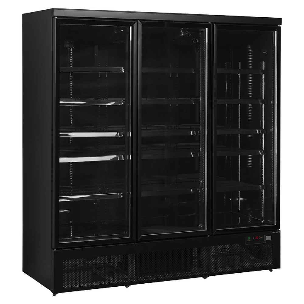Холодильный шкаф TEFCOLD ATOM MAXI C3DBB предназначен для охлаждения и кратковременного хранения скоропортящихся продуктов и напитков на предприятиях общественного питания и торговли. Модель оснащена 3 распашными прозрачными дверьми, 15 регулируемыми полками, встроенными ручками, термометром и 6 колесами. Двери выполнены из двойного закаленного стекла, основание - из нержавеющей стали с зеркальным эффектом.