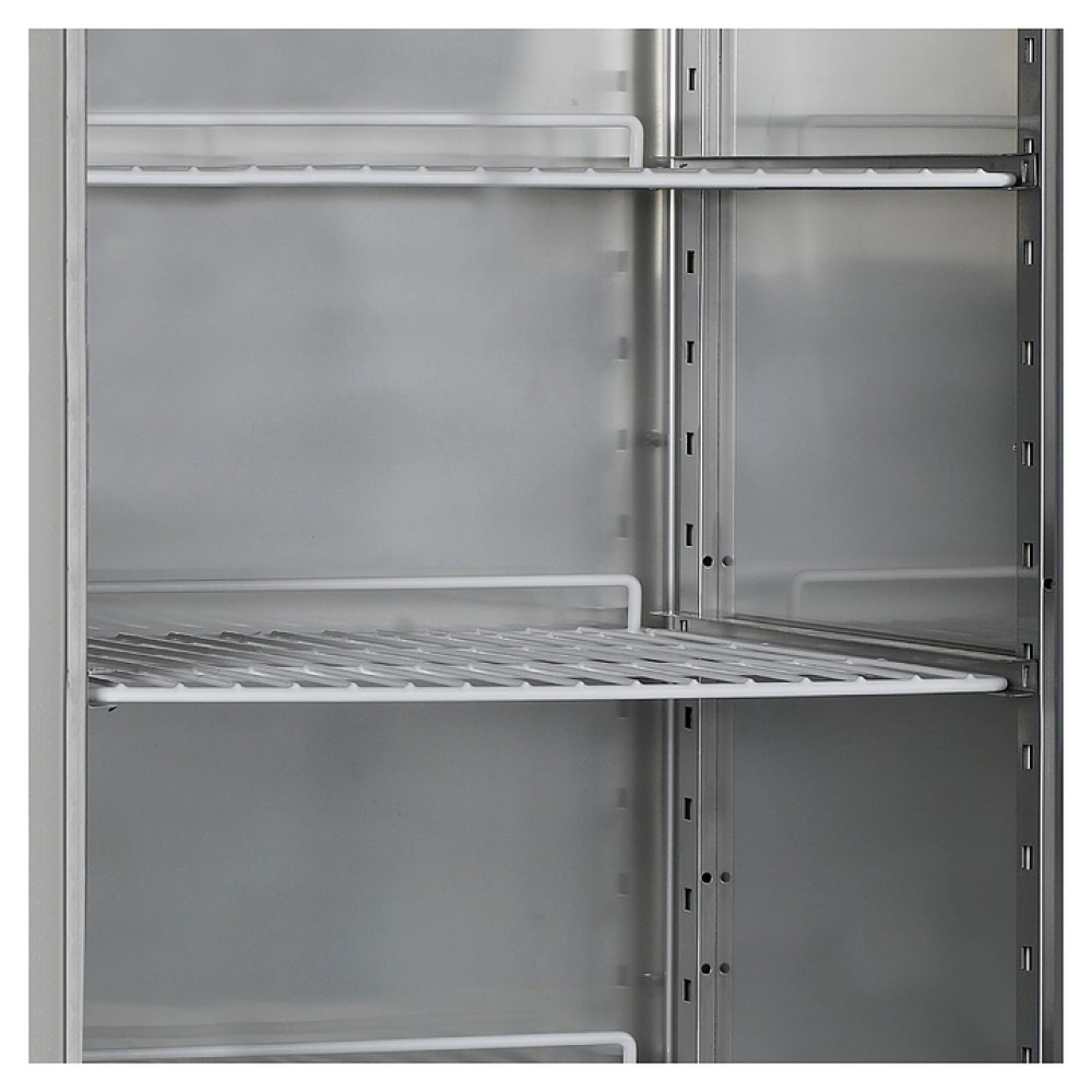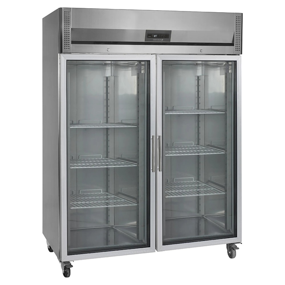 Холодильный шкаф TEFCOLD RK1420G предназначен для демонстрации, охлаждения и кратковременного хранения алкогольных и безалкогольных напитков и скоропортящихся продуктов на предприятиях общественного питания и торговли. Модель оснащена 6 регулируемыми полками GN 2/1, 4 колесами, 2 из которах со стопорами и 2 самозакрывающимися дверьми с замком. Корпус и внутренняя обшивка выполнены из нержавеющей стали AISI 304.