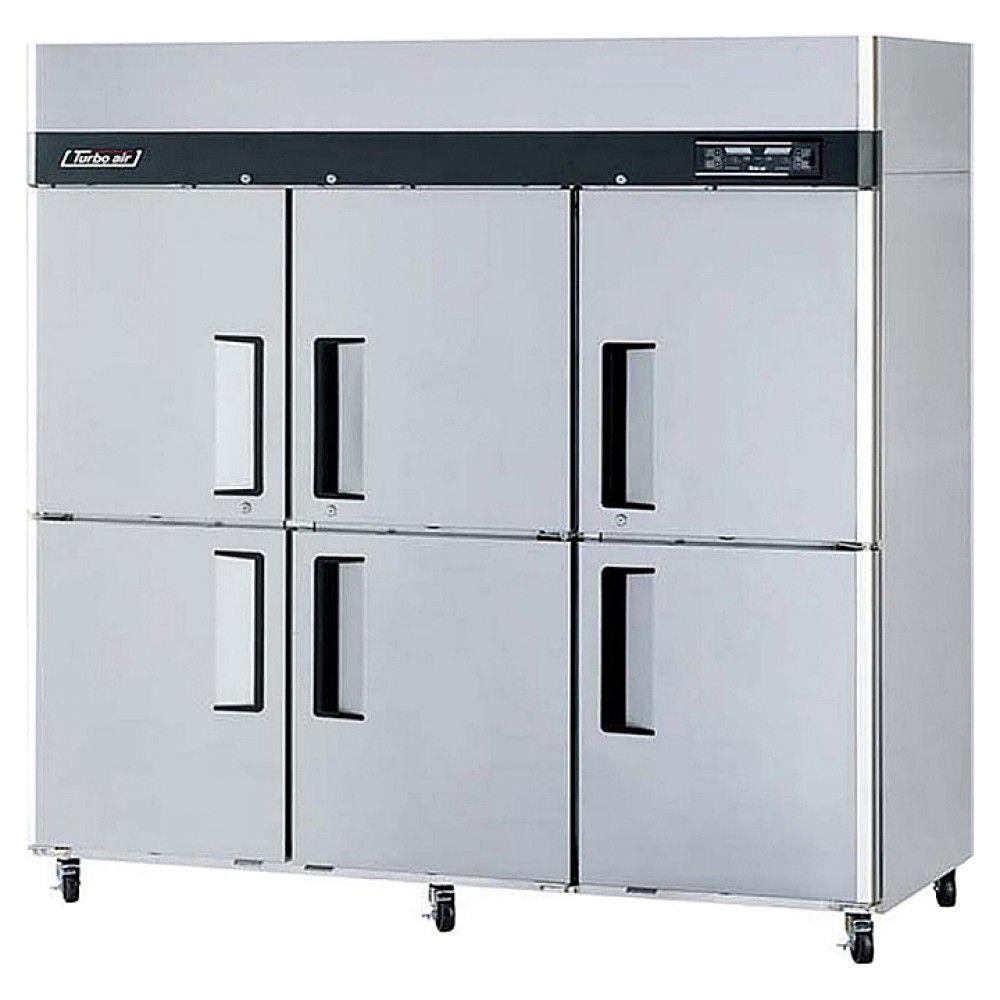 Комбинированный шкаф Turbo air KRF65-6 предназначен для охлаждения, заморозки и хранения скоропортящихся продуктов и полуфабрикатов на предприятиях пищевой промышленности и торговли. Корпус выполнен из нержавеющей стали с применением полиуретановой теплоизоляции высокой плотности и уплотнения из теплоэффективного АБС-пластика (акрилонитрилбутадиенстирола), не пропускающего конденсата, оборотная сторона и низ - из оцинкованной стали, пол - из нержавеющей стали с алюминиевыми вставками по бокам и сзади, регулируемые полки - из толстой проволоки с виниловым покрытием.