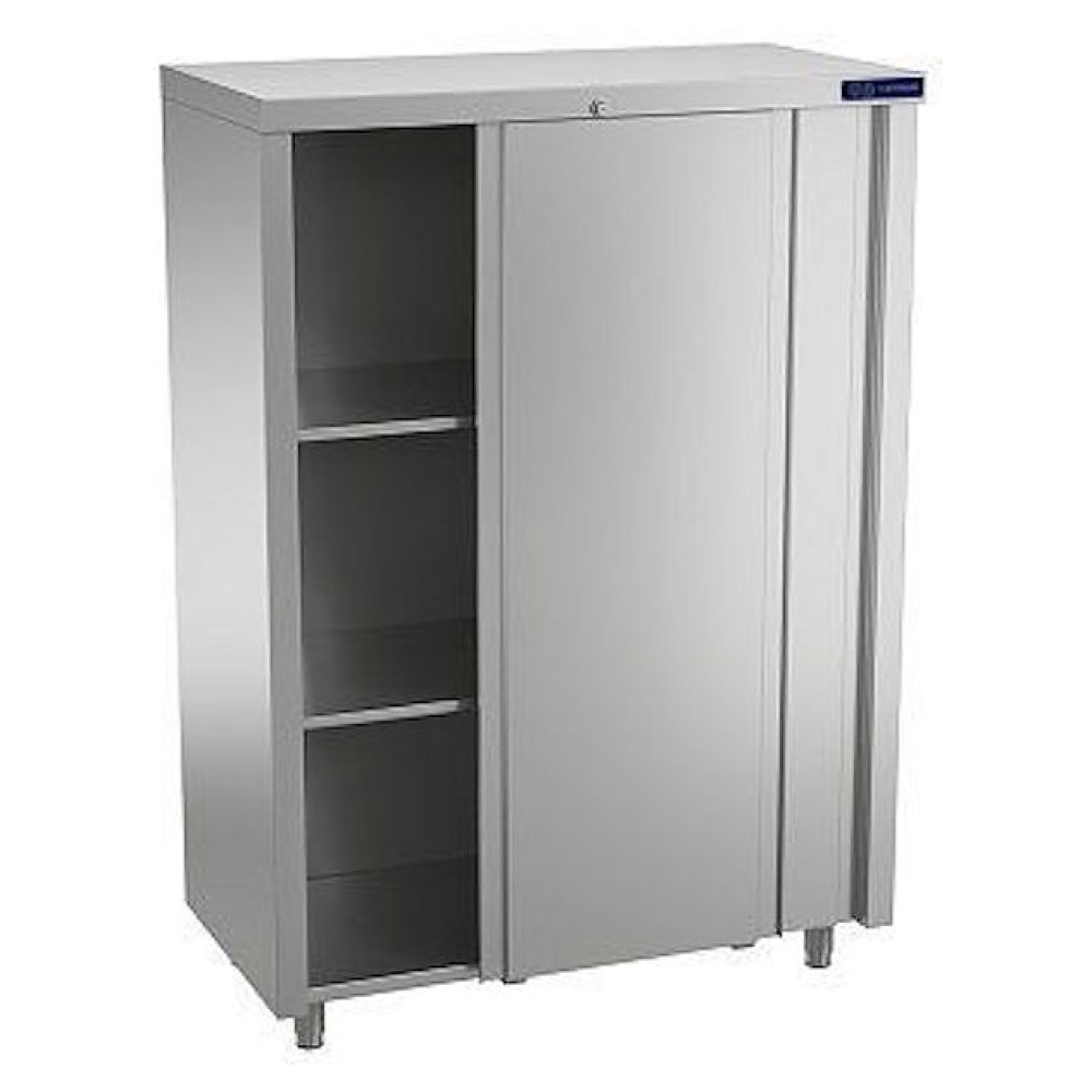 Шкаф KAYMAN ШПИ-222/1206-А используется для хранения посуды и кухонного инвентаря на предприятиях общественного питания и торговли. Модель оснащена дверями купе с замком. Материал шкафа - нержавеющая сталь, дна и задней стенки - оцинкованная сталь. Профиль ножек - круглая труба.