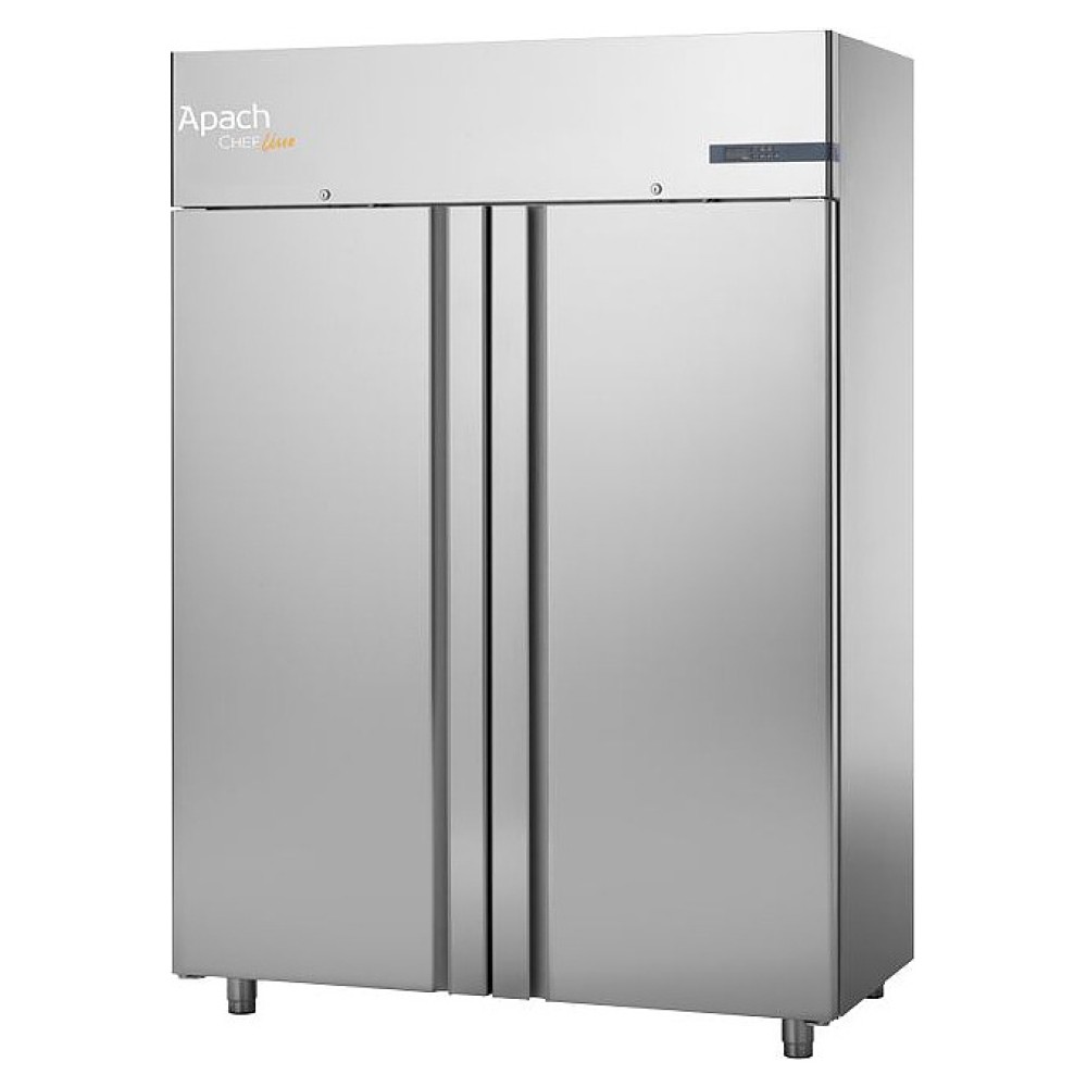 Морозильный шкаф Apach LCFM120MD2 серии Chef Line предназначен для охлаждения и кратковременного хранения замороженных полуфабрикатов на предприятиях общественного питания и торговли. Модель оснащена 2 самозакрывающимися дверьми с магнитным уплотнителем и возможностью перенавешивания, внутренней подсветкой, регулируемыми ножками и замком. Корпус, внутренняя камера, крышка испарителя, стойки, внутренние направляющие, дверная ручка и ножки выполнены из нержавеющей стали AISI 304, отделка задней стенки - из оцинкованной стали.