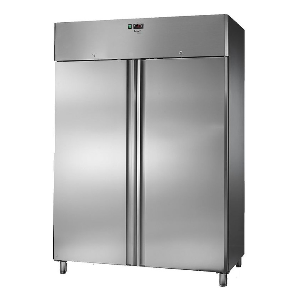 Морозильный шкаф Apach F1400BT/290 DOM PLUS предназначен для заморозки и долговременного хранения продуктов, полуфабрикатов, напитков и мороженого на предприятиях общественного питания и торговли. Модель оснащена электронной панелью управления с 2 термисторами NTC, 2 самозакрывающимися дверцами с магнитным уплотнителеми и регулируемыми по высоте ножками. Корпус и камеры выполнены из нержавеющей стали, верхняя и задняя панели - из оцинкованной стали, теплоизоляция - из полиуретана, впрыскиваемого под высоким давлением, без использования опасных ХФУ.