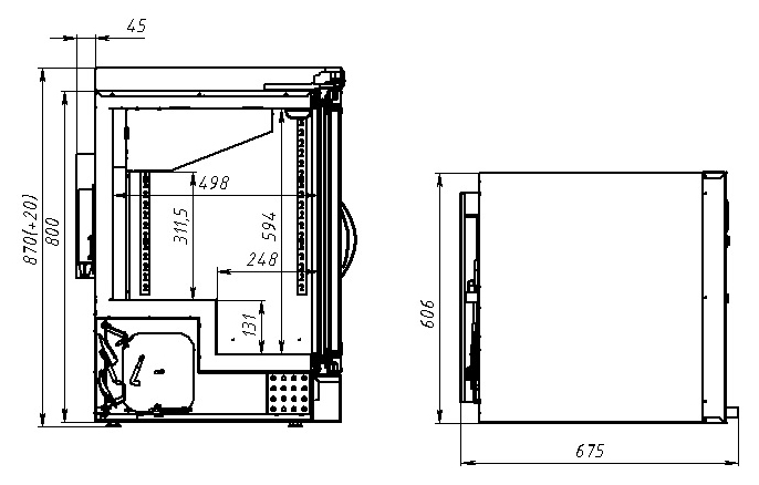 | Высота870 мм | Глубина675 мм | Ширина606 мм |