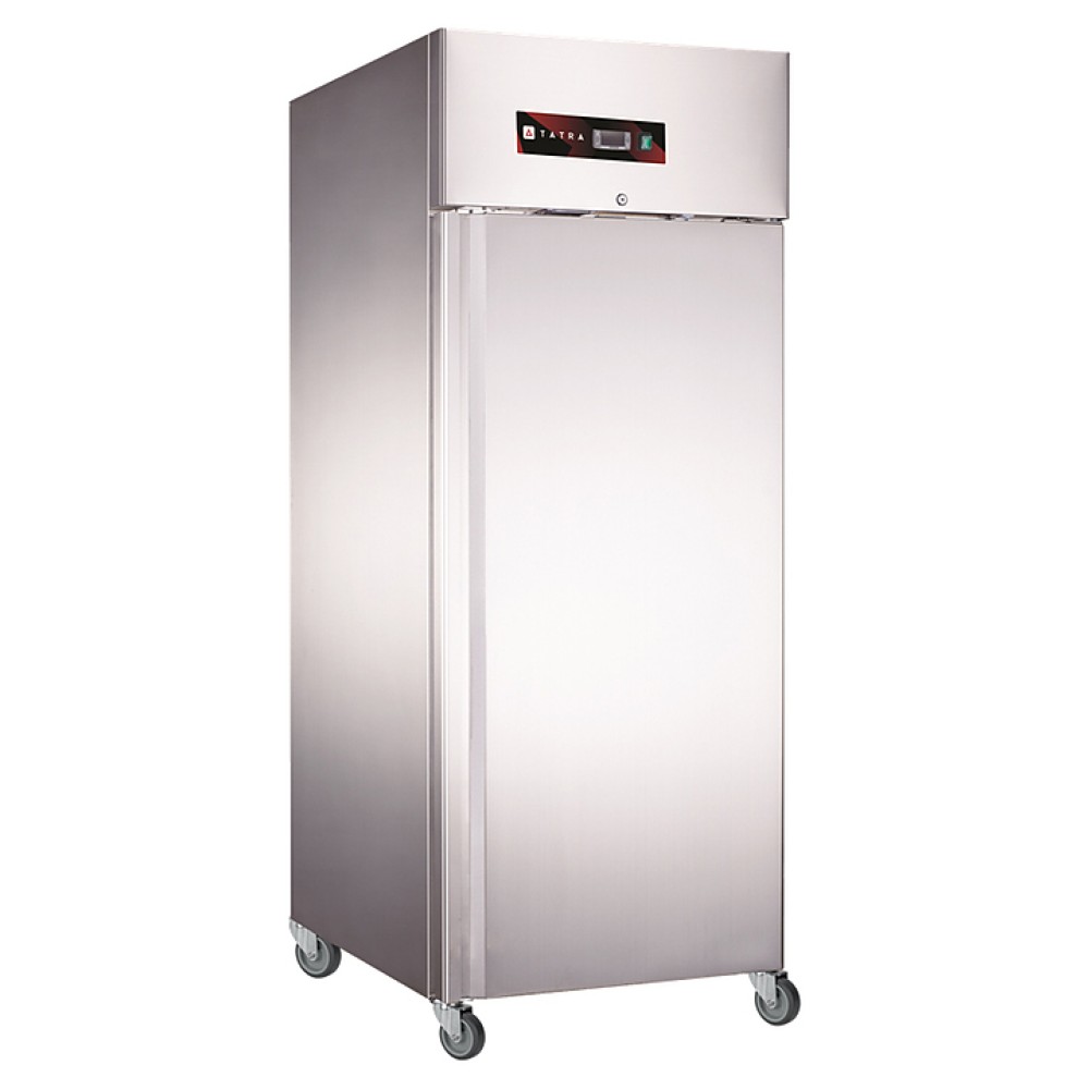 Морозильный шкаф Tatra TRC700 BT предназначен для заморозки и длительного хранения продуктов, полуфабрикатов и мороженого на предприятиях общественного питания и торговли. Модель оснащена встроенным холодильным агрегатом с верхним расположением, 3 гастронормированными полками, глухой дверцей, замком и колесами. Корпус и камера выполнены из высококачественной нержавеющей стали.