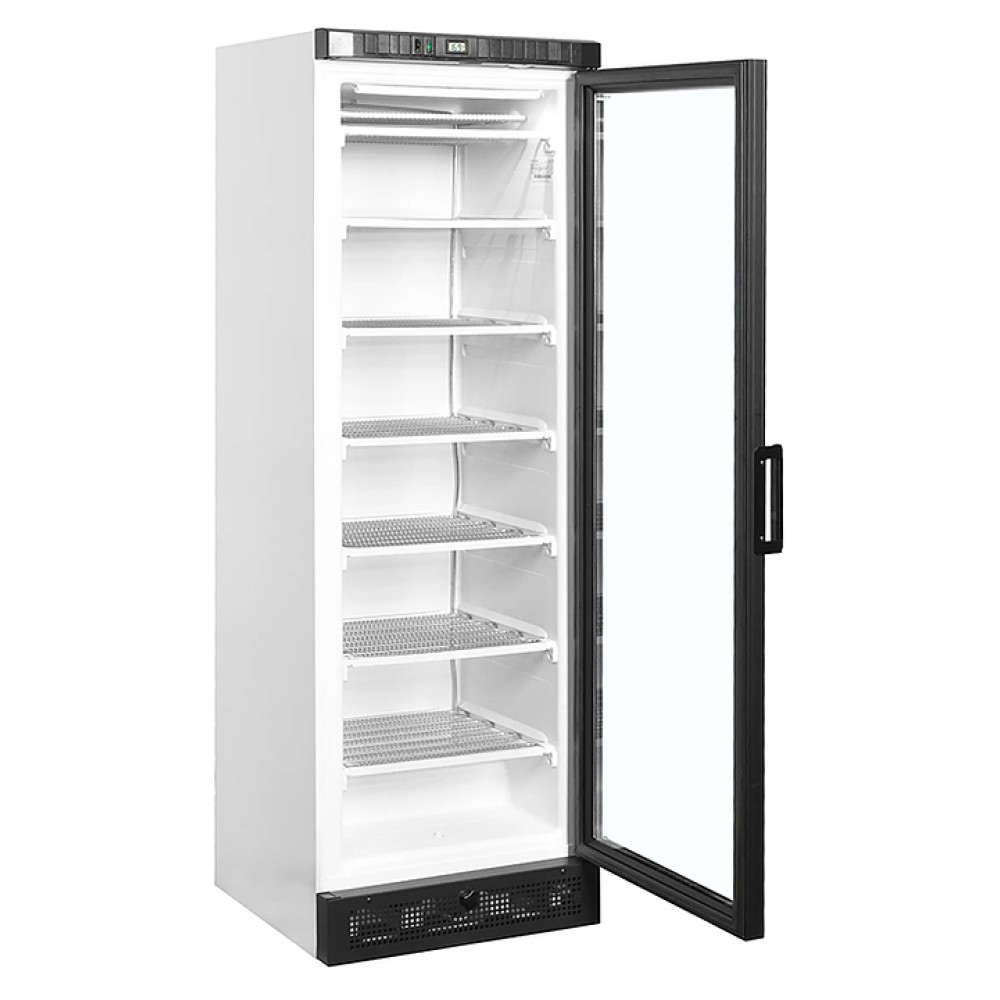 Морозильный шкаф TEFCOLD UFSC371G предназначен для демонстрации, заморозки и длительного хранения продуктов, полуфабрикатов и мороженого на предприятиях общественного питания и торговли. Модель оснащена распашной прозрачной дверью с подогревом, внутренней светодиодной подсветкой, электронным термометром, замком, 6 полками, 2 регулируемыми ножками и 2 роликами. Дверь выполнена из высокопрочного стекла.