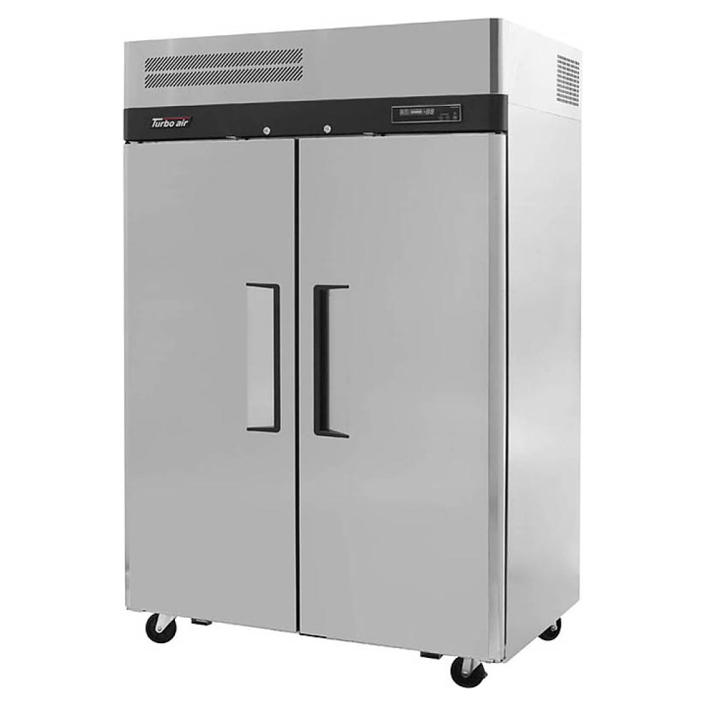 Морозильный шкаф Turbo air KF45-2P предназначен для охлаждения, заморозки и хранения продуктов и полуфабрикатов на предприятиях общественного питания и торговли. Корпус и направляющие для противней выполнены из нержавеющей стали (гальванизированная сталь на оборотной стороне и внизу), уплотнения - из АБС-пластика (акрилонитрилбутадиенстирола), не пропускающего конденсата, пол - из нержавеющей стали с алюминиевыми вставками по бокам и сзади оборудования.