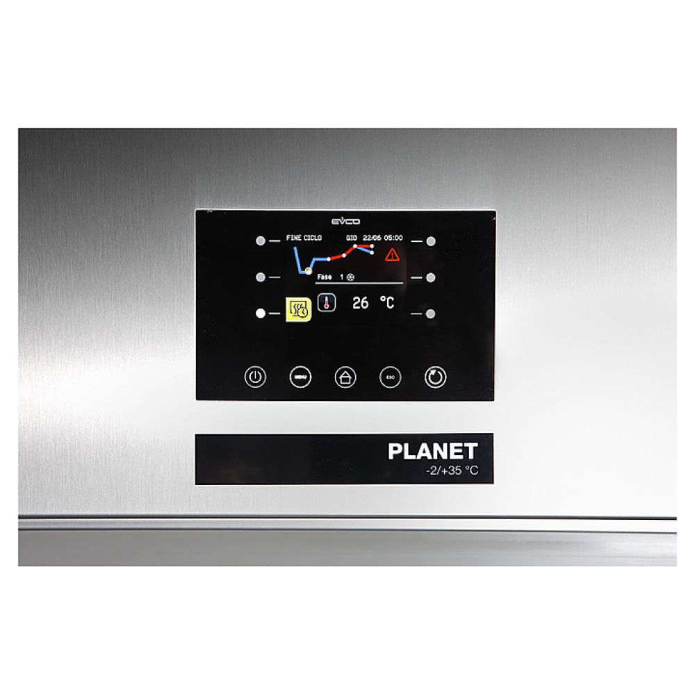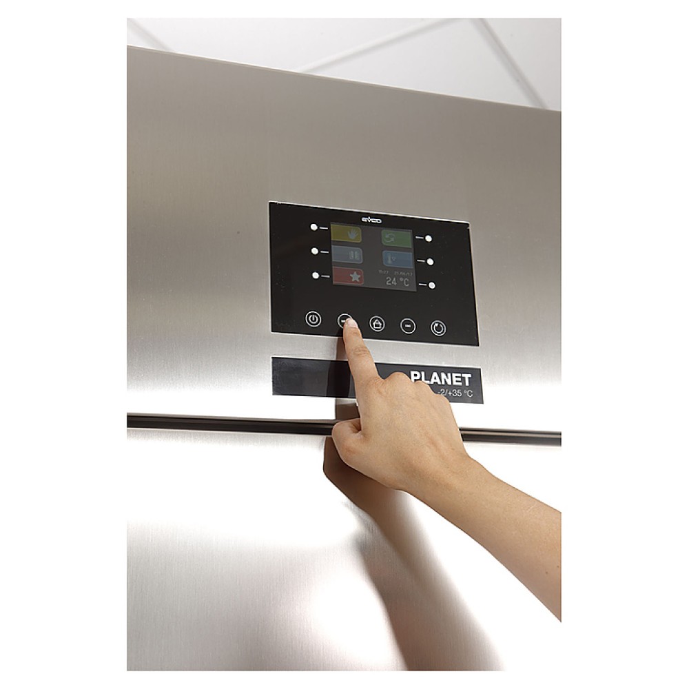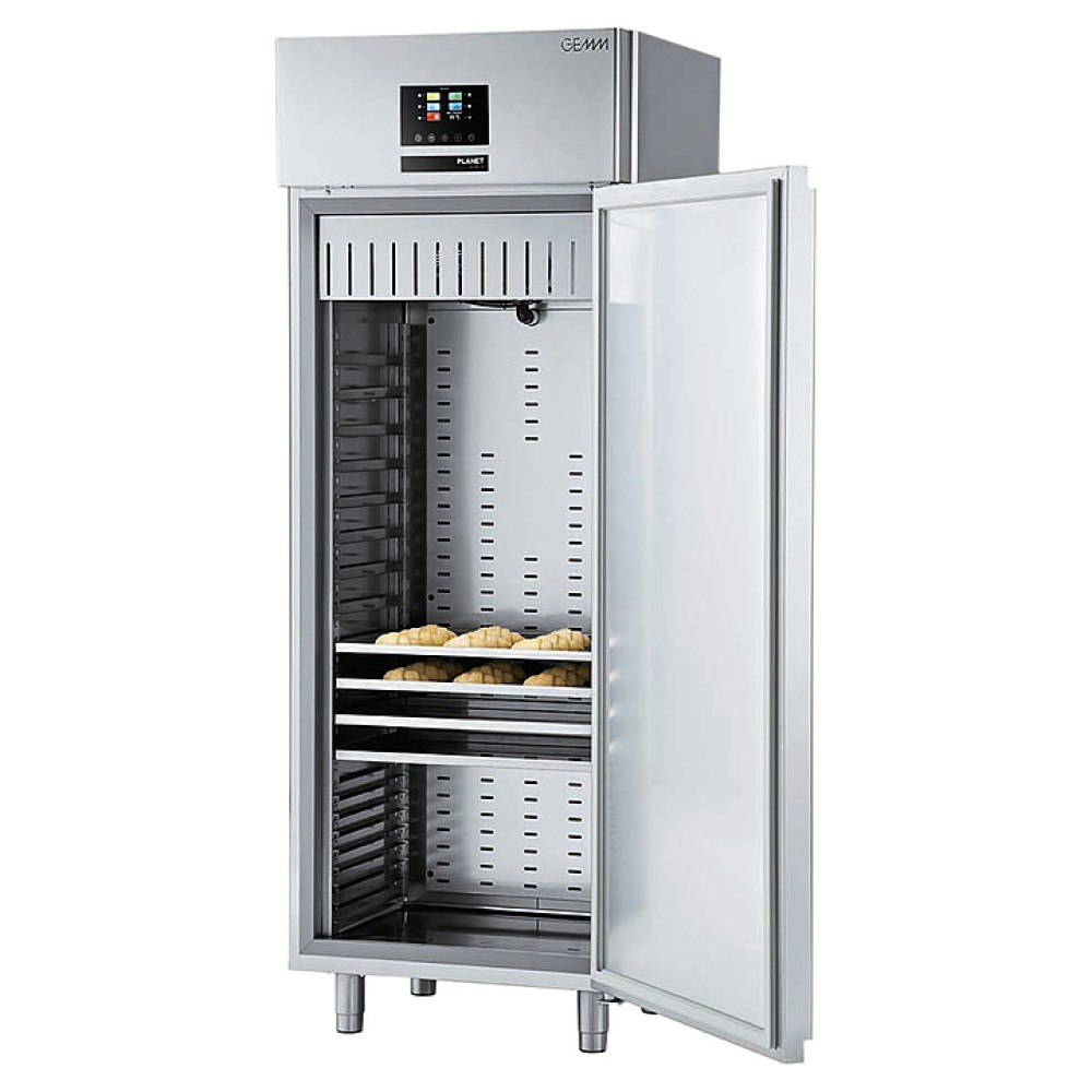 Шкаф отложенной расстойки Gemm AFLV/40 серии PLANET предназначен для расстойки тестовых заготовок перед процессом выпечки в пекарском шкафу или промышленной духовке на предприятиях общественного питания и торговли. Процесс можно разбить на две фазы: «холодную», когда продукт сохраняется до 6 дней при холодной температуре без расстойки, и «горячую», при которой обеспечивается сама расстойка. Модель оснащена цифровым термостатом.