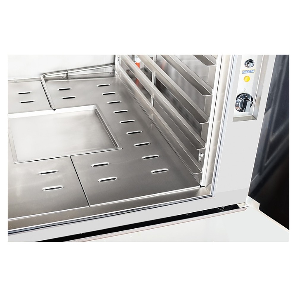Расстоечный шкаф Abat ШРТ-12М используется в пекарнях, кондитерских и на предприятиях общественного питания и торговли для расстойки тестовых заготовок, в процессе которой тесто увеличивается в объеме и приобретает ровную поверхность, восстанавливается его пористость. Модель оснащена клапаном подачи воды в ванну, лотком для сбора конденсата и регулируемыми по высоте ножками. Камера и наружные поверхности выполнены из высококачественной нержавеющей стали.