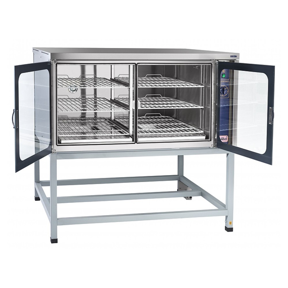 Расстоечный шкаф Abat ШРТ 6-ЭШ используется в пекарнях, кондитерских и на предприятиях общественного питания и торговли для расстойки тестовых заготовок, в процессе которой тесто увеличивается в объеме и приобретает ровную поверхность, восстанавливается его пористость. Модель оснащена регулируемыми по высоте ножками.
