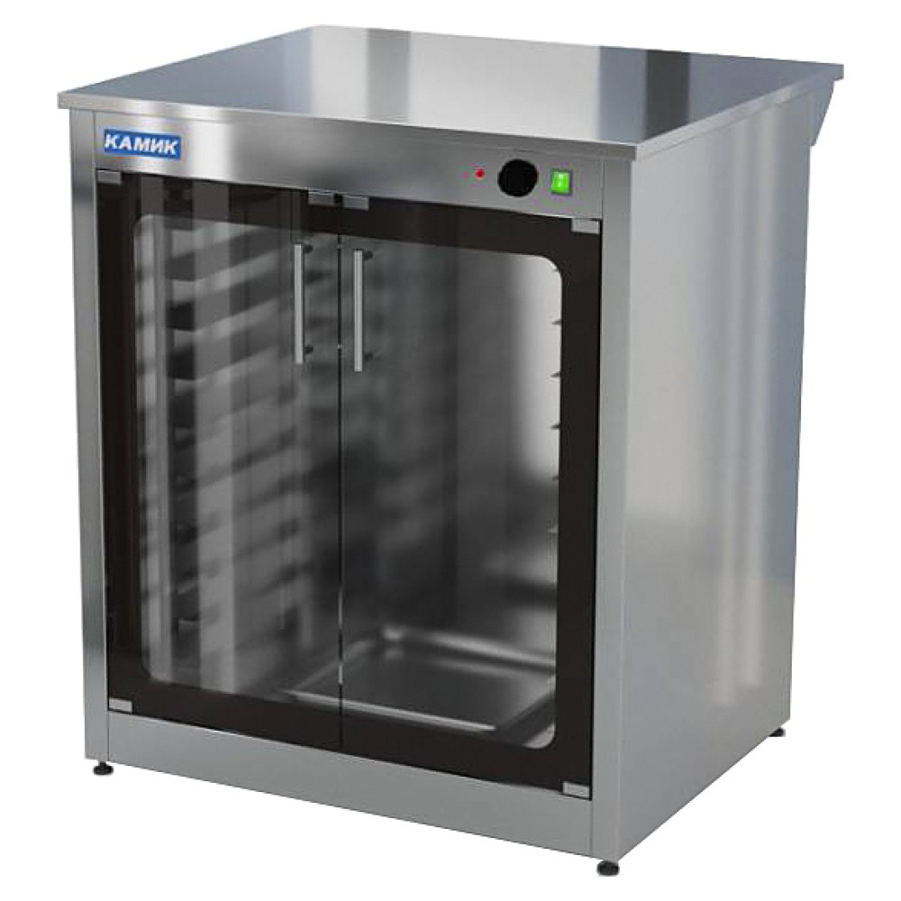 Расстоечный шкаф КАМИК АРГО 100 используется на предприятиях общественного питания и торговли для расстойки теста перед выпеканием кондитерских и хлебобулочных изделий. Модель оснащена поддоном для воды и двумя распашными стеклянными дверьми, ручки которых расположены справа, а петли слева. Предназначен для печей серий ALFA310, ALFA420, ALFA142, ALFA143, ALFA144. Корпус выполнен из стали AISI 430.