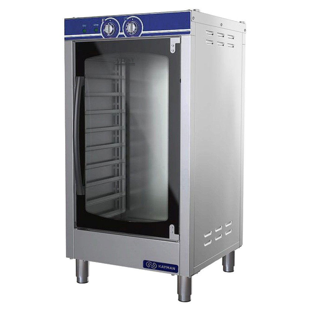 Расстоечный шкаф KAYMAN ШРЭ-10-1 А предназначен для расстойки мелкоштучных кондитерских и хлебобулочных изделий на предприятиях общественного питания и торговли. Модель оснащена терморегулятором и световыми индикаторами подключения к сети и нагрева. Корпус и камера выполнены из нержавеющей стали, дверца - из термостойкого стекла.
