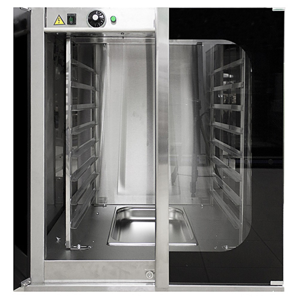 Расстоечный шкаф Пищевые Технологии ШР-930-8 К используется в пекарнях, кондитерских, на предприятиях общественного питания и торговли для расстойки тестовых заготовок, в процессе которой тесто увеличивается в объеме и приобретает ровную поверхность, восстанавливается его пористость. Корпус и камера выполнены из нержавеющей стали, дверцы - из стекла.