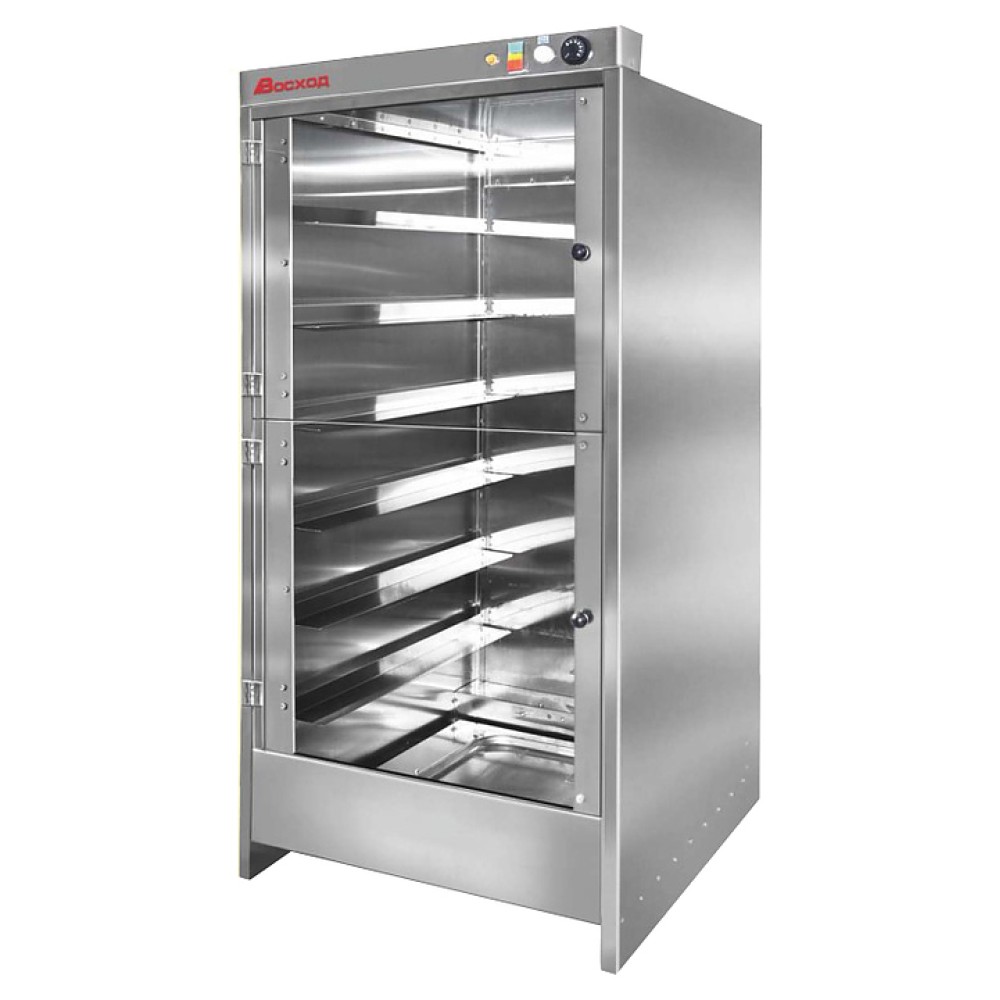 Шкаф расстоечный Восход ШР-1H используется на предприятиях общественного питания и торговли для окончательной расстойки тестовых заготовок хлебобулочных продуктов, кондитерских изделий (круассанов, рогаликов, бубликов, булочек, пирожных) и пиццы на подовых листах и в хлебных формах. Модель оснащена 6 направляющими для подовых листов и хлебных форм. Шкаф изготовлен из нержавеющей стали.