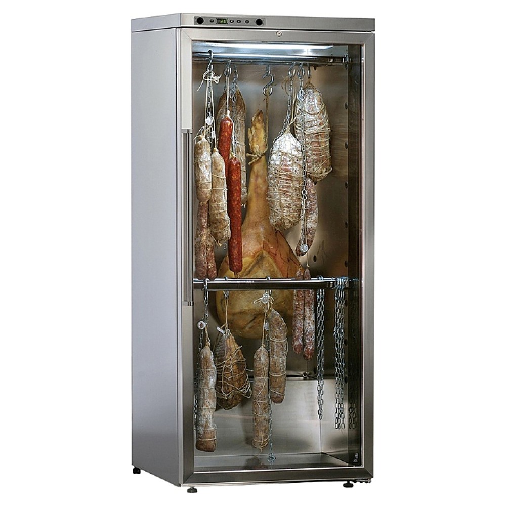 Шкаф для хранения колбас IP Industrie SAL 301 X серии Salumeria создает оптимальные условия для сохранения всех вкусовых свойств мясных и колбасных изделий. Модель оснащена электронным термостатом, цифровым дисплеем, подсветкой и замком. Корпус и камера выполнены из нержавеющей стали, дверь - из рамы из нержавеющей стали и двойного стекла с защитой от ультрафиолетовых лучей, полка - из нержавеющей стали.