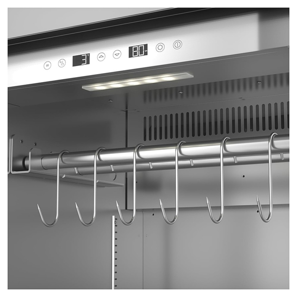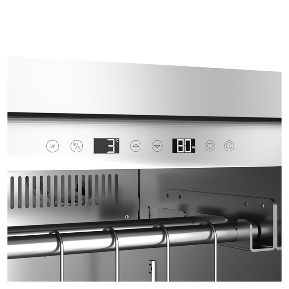 Шкаф для мяса CASO DryAged Master 380 Pro предназначен для охлаждения и вызревания мяса и колбас на предприятиях пищевой промышленности, общественного питания и торговли, а также в частных домах и квартирах. Модель оснащена сенсорной панелью управления, съемным контейнером для воды и замком. Корпус выполнен из нержавеющей стали, дверца - из стекла с ультрафиолетовым фильтром.