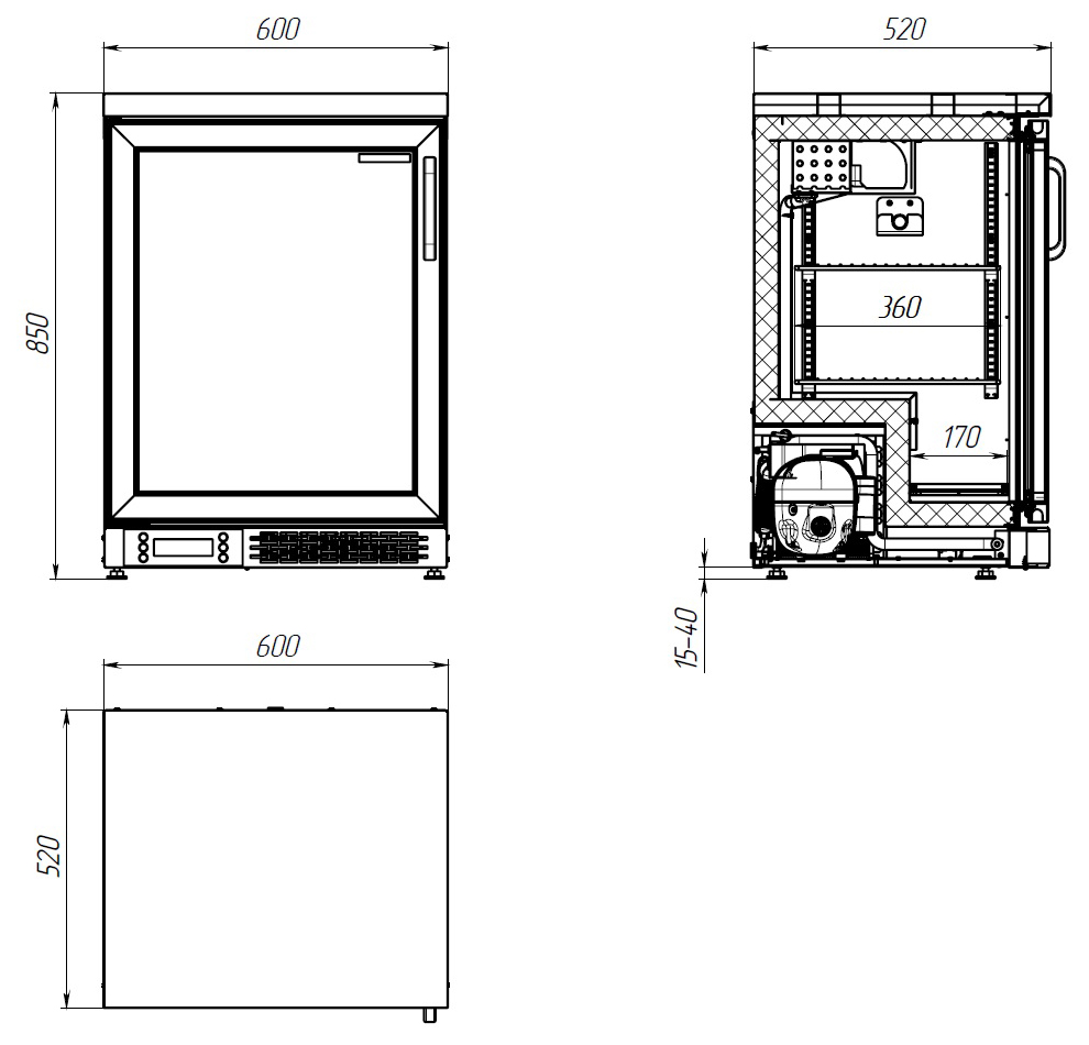 | Высота850 мм | Глубина600 мм | Ширина520 мм |