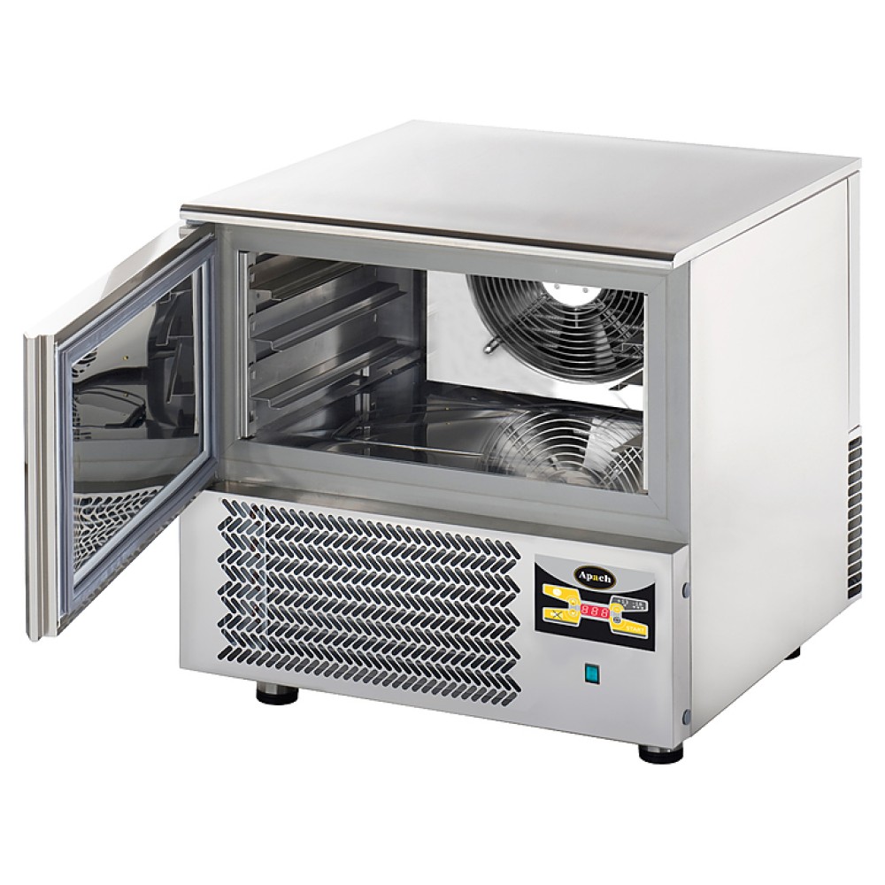 Шкаф шоковой заморозки Apach SH03 предназначен для быстрой заморозки продуктов и приготовленных блюд на предприятиях общественного питания и торговли. Модель с электронной панелью управления оснащена встроенным холодильным агрегатом, самозакрывающимися дверями с магнитным уплотнителем и регулируемыми по высоте ножками. Корпус и внутренняя камера выполнены из нержавеющей стали AISI 304, днище, потолок и тыльная часть - из оцинкованного листа, изоляция - из пенополиуретана толщиной 60 мм.