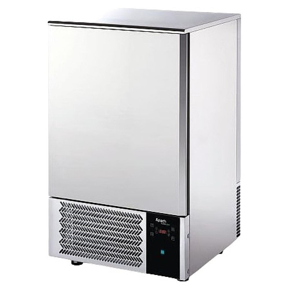 Шкаф шоковой заморозки Apach SH07D R290 предназначен для быстрого охлаждения и замораживания различных пищевых продуктов с сохранением их первоначальных свойств на предприятиях общественного питания и торговли. Модель оснащена цифровой панелью управления и регулируемыми по высоте ножками. Корпус и рабочая камера выполнены из нержавеющей стали, теплоизоляция - из полиуретана, ёмкость для сбора конденсата - из расширенного полиуретана плотностью 40 кг/м³, отсек с электродвигателем – из оцинкованной стали.
