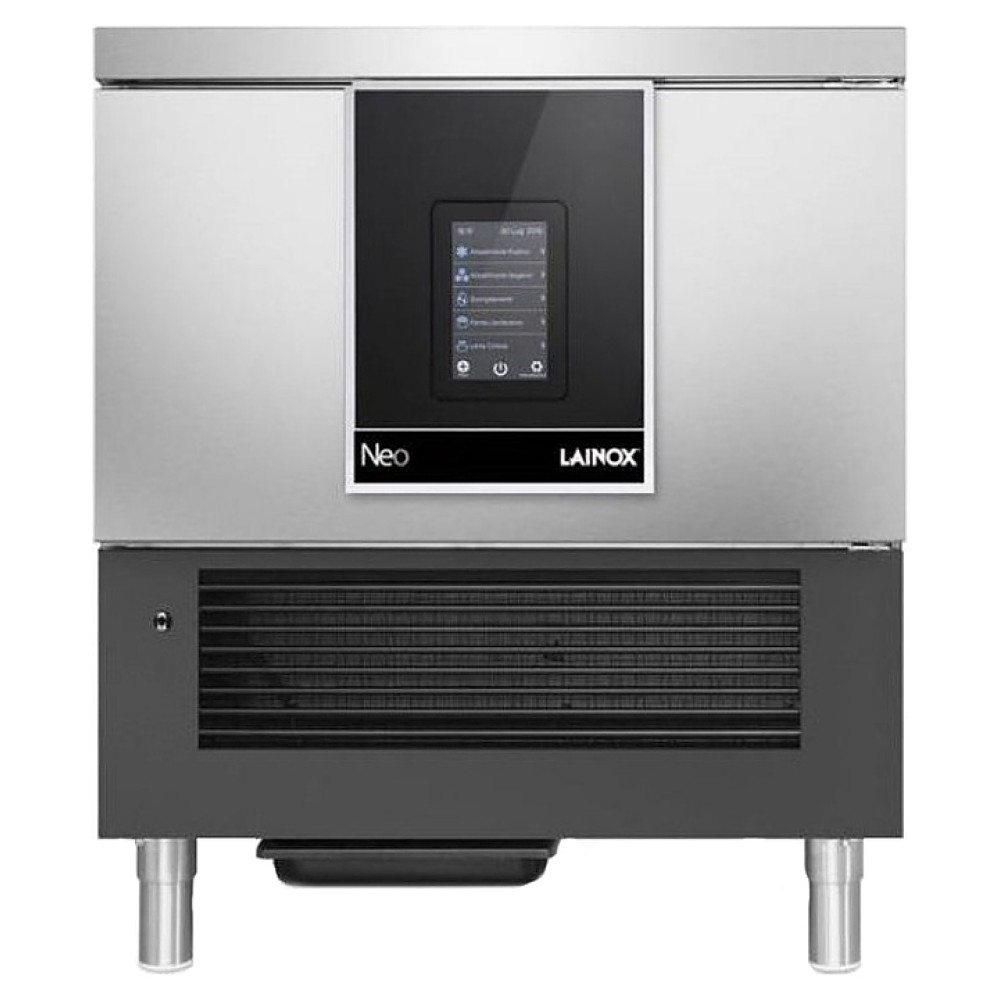 Шкаф шоковой заморозки Lainox NEOG051 используется на предприятиях общественного питания, а также в продовольственных магазинах, супермаркетах и на пищевом производстве для быстрого охлаждения и заморозки большого объема продуктов питания с сохранением их первоначальных свойств. Резкое изменение температуры препятствует росту бактерий без потери влажности пищи. Модель оснащена сенсорным управлением, встроенным холодильным агрегатом, подогреваемым температурным 4-точечным датчиком-щупом, съемными направляющими и дверцей с эргономичной ручкой и магнитными прокладками по периметру. Корпус изготовлен из нержавеющей стали AISI 304 18/10 с пенополиуретановой теплоизоляцией без HCFC плотностью 42 кг/м3 и толщиной 60 мм, испаритель - из меди и алюминия.