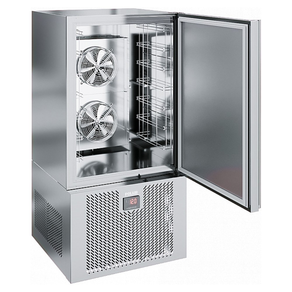 Шкаф шоковой заморозки POLAIR CR7-G используется на предприятиях общественного питания и торговли для быстрого охлаждения и заморозки различных продуктов, прошедших тепловую обработку, с сохранением его первоначальных свойств. Корупс выполнен из нержавеющей стали и обеспечивает механическую прочность и долговечность шкафа. Оборудование рассчитано на работу при температуре окружающей среды до 40 °С.