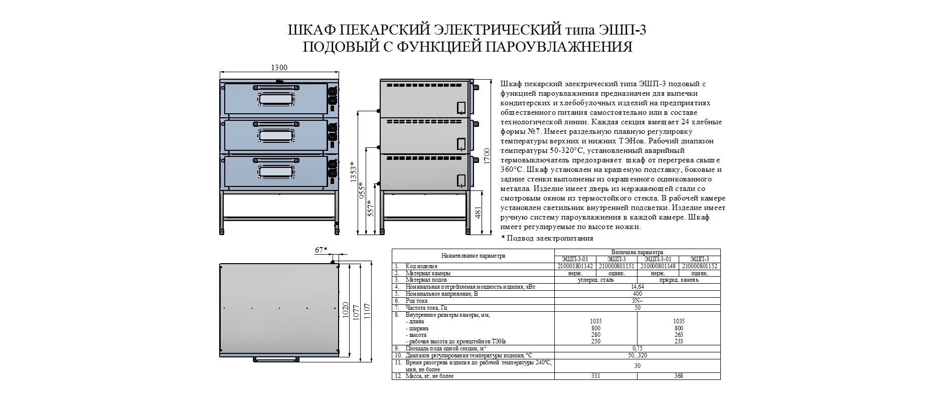 | Количество камер (подов)3 | Количество уровней в одной камере1 | Подключение380 В |