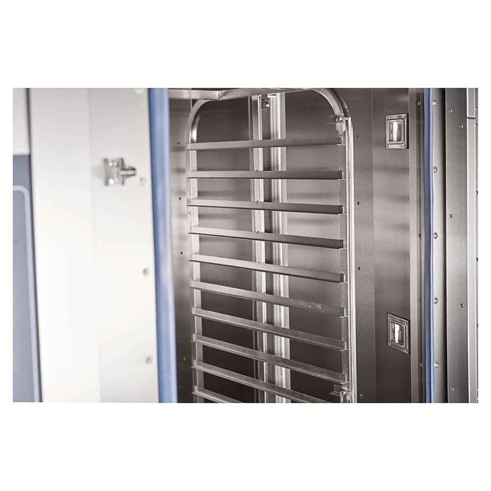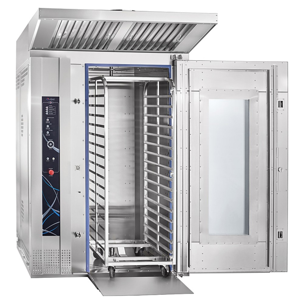 Ротационный пекарский шкаф Abat РПШ-16-2/1М предназначен для приготовления хлебобулочных и кондитерских изделий, различных блюд методом обработки паром и горячим воздухом по отдельности или комбинированно на предприятиях общественного питания и торговли. Модель оснащена панелью управления с таймером, возможностью корректирования программ во время выпечки и отображения информации о режимах работы и аварийных ситуациях.