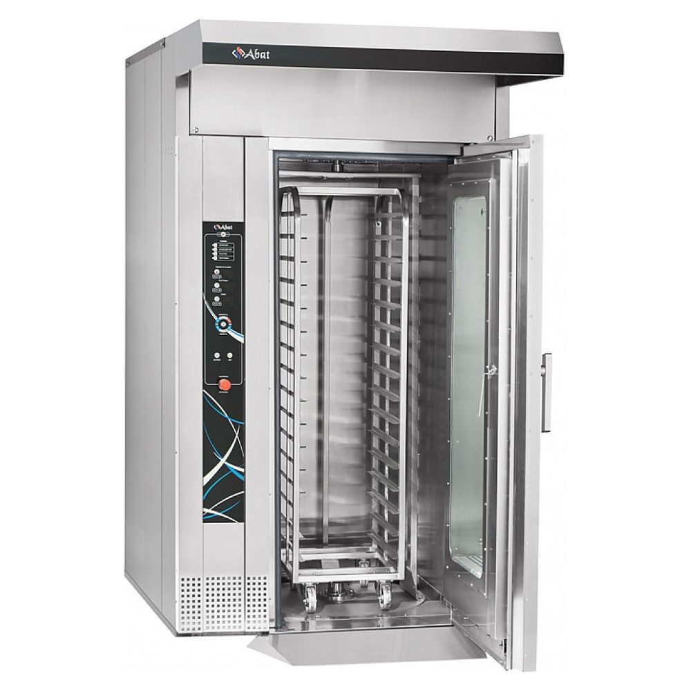 Ротационный пекарский шкаф Abat РПШ-16-6-4 предназначен для приготовления хлебобулочных и кондитерских изделий, различных блюд методом обработки паром и горячим воздухом по отдельности или комбинированно на предприятиях общественного питания и торговли. Модель оснащена панелью управления с таймером, возможностью корректирования программ во время выпечки и отображения информации о режимах работы и аварийных ситуациях.