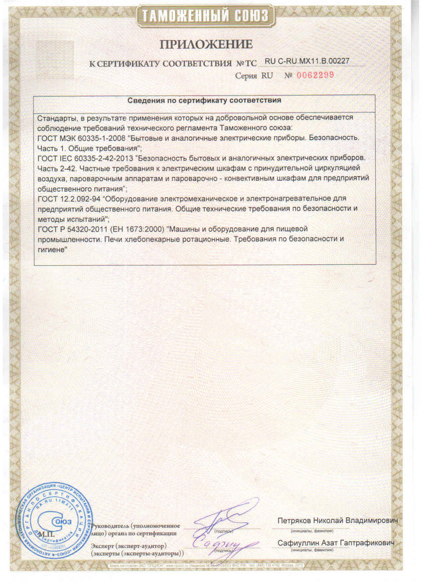 | Формат емкостей | противни 800x600 мм, хлебная форма №7 |