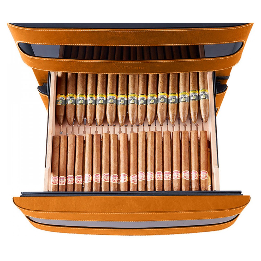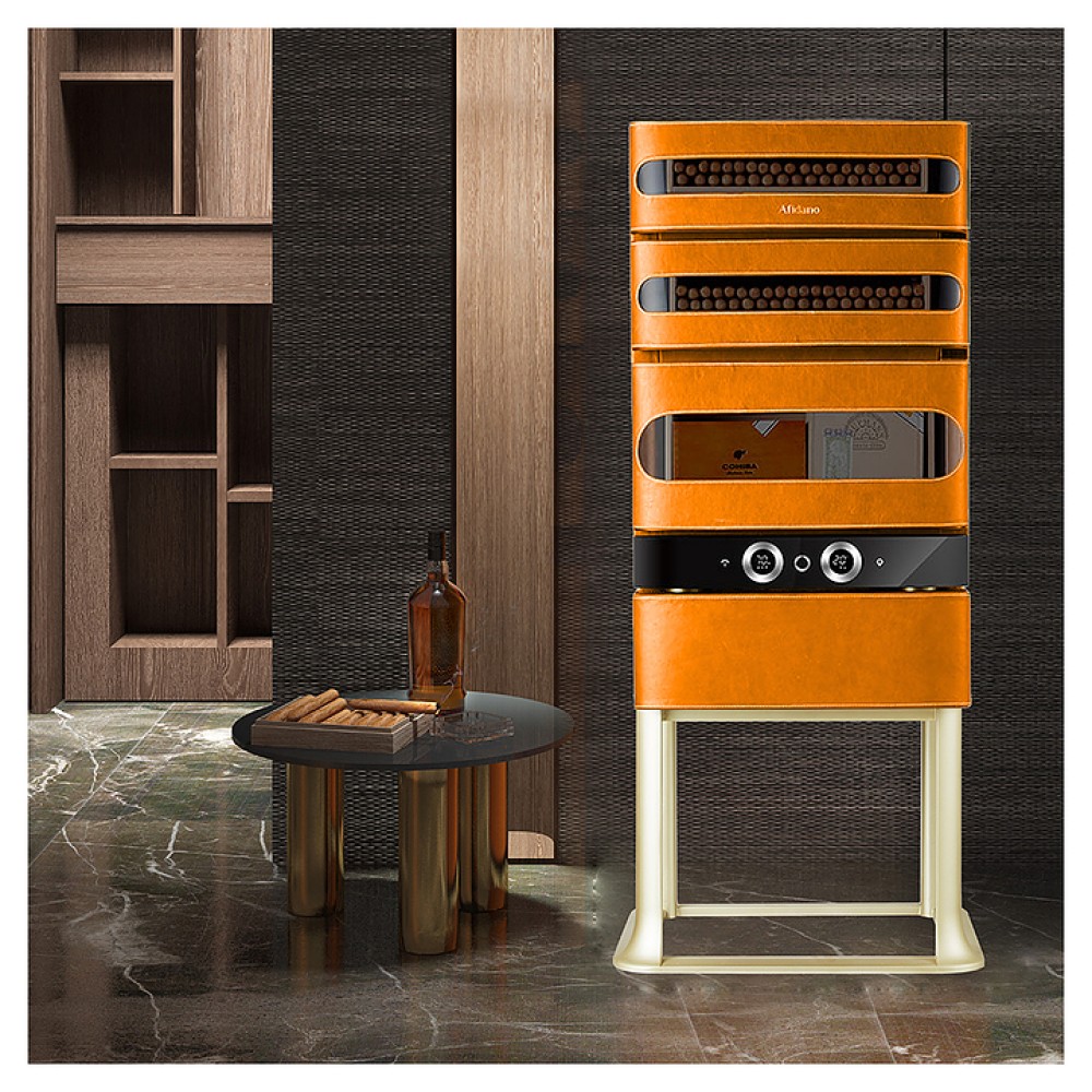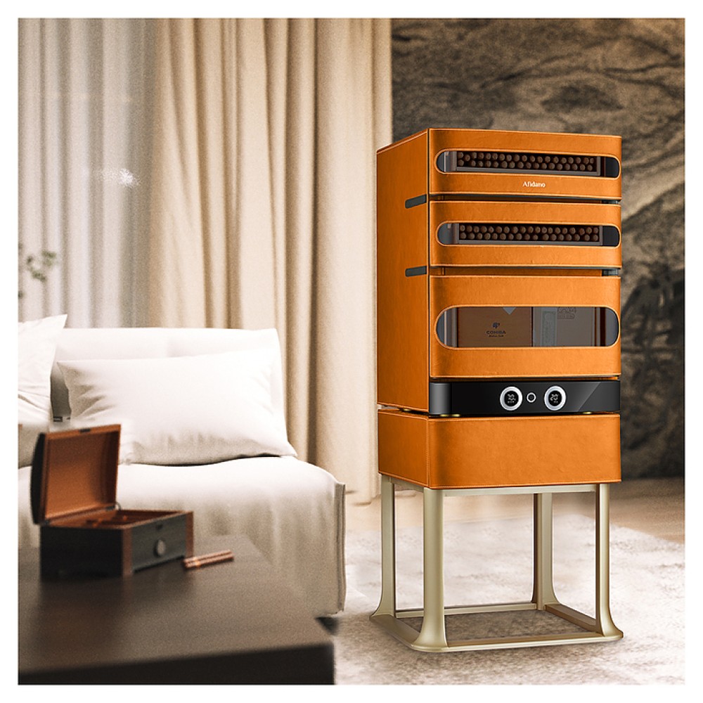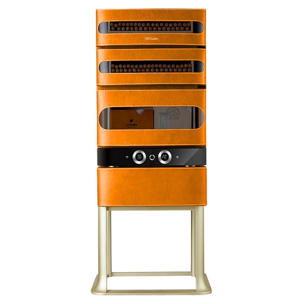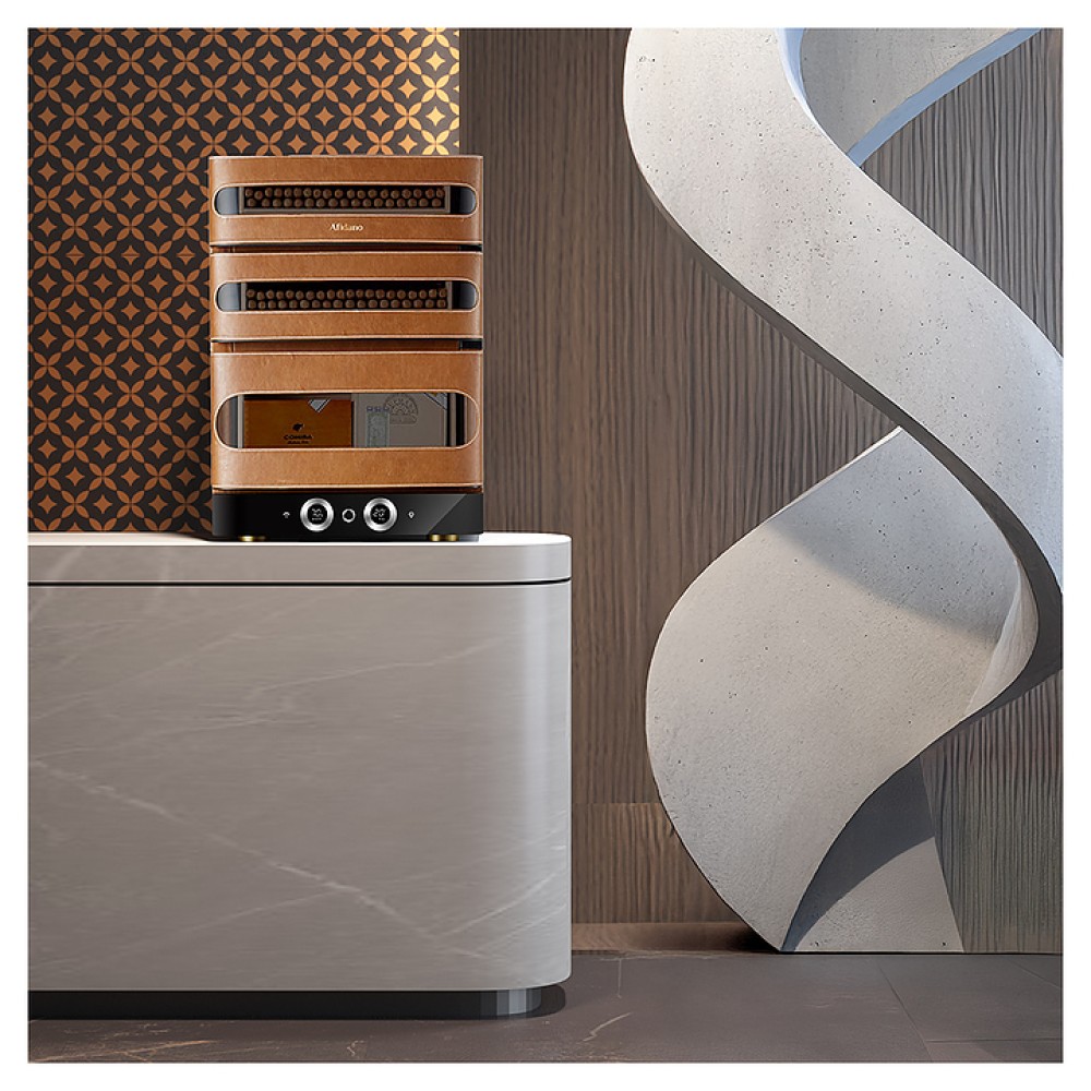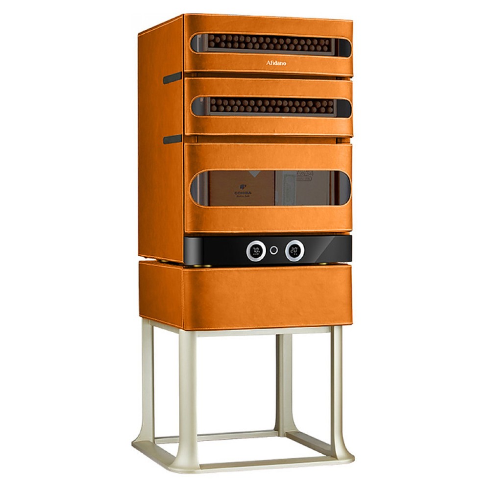 Шкаф Afidano L3 предназначен для хранения в оптимальных условиях и демонстрации сигар в специализированных магазинах, гостиницах, складских помещениях и домашних условиях. Модель оснащена 1 температурной зоной, 3 дверьми, открытием отпечатком пальца, сенсорной панелью управления, 3 выдвижными ящиками, утопленной ручкой, электронным термостатом и регулируемыми ножками. Цифровой гигрометр и внутренняя подсветка упрощают мониторинг и обзор содержимого. Корпус выполнен из стали, обшитой скульптурным полотном, внутренняя отделка и ящики - из испанского кедра.