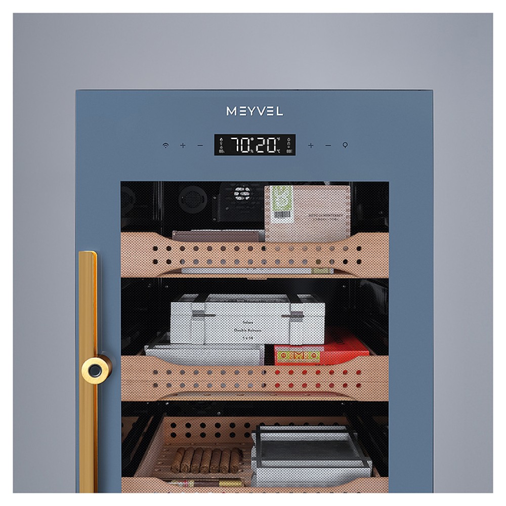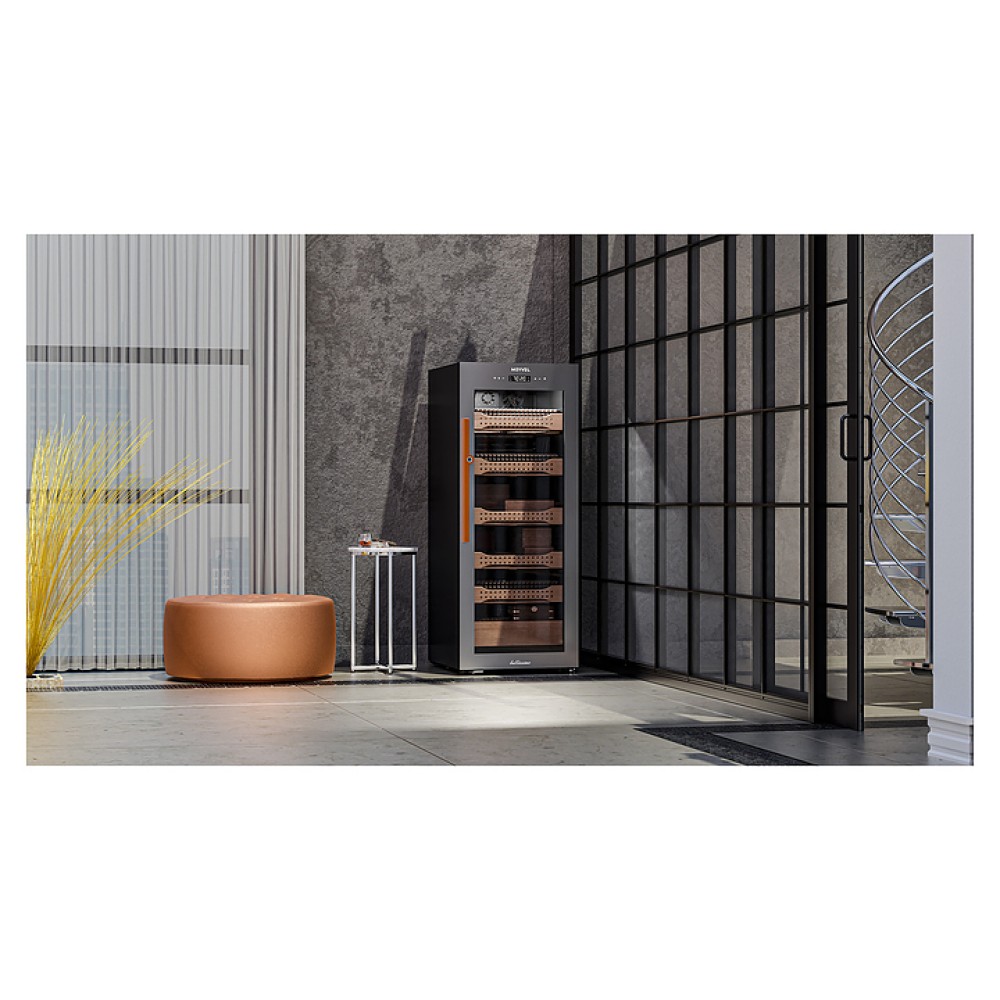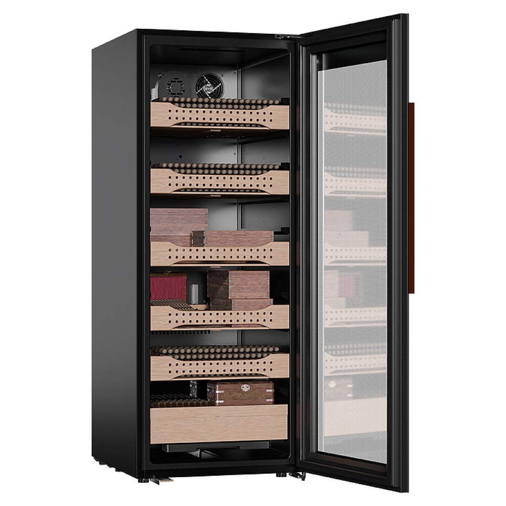 Шкаф MEYVEL MC-200BK (PRO) предназначен для хранения табачных изделий. Встроенный гигрометр и внутренняя подсветка упрощают мониторинг и обзор содержимого. Модель оснащена 1 температурной зоной, сенсорной панелью управления, дверью с магнитным уплотнителем для плотного закрывания и регулируемыми ножками. Дверца выполнена из двойного стекла с УФ-фильтром, ручка - из стали, внутренняя отделка - из высококачественного испанского кедра, который поддерживает оптимальный уровень влажности внутри камеры, что позволяет сохранять сигары в превосходном состоянии на протяжении длительного времени.