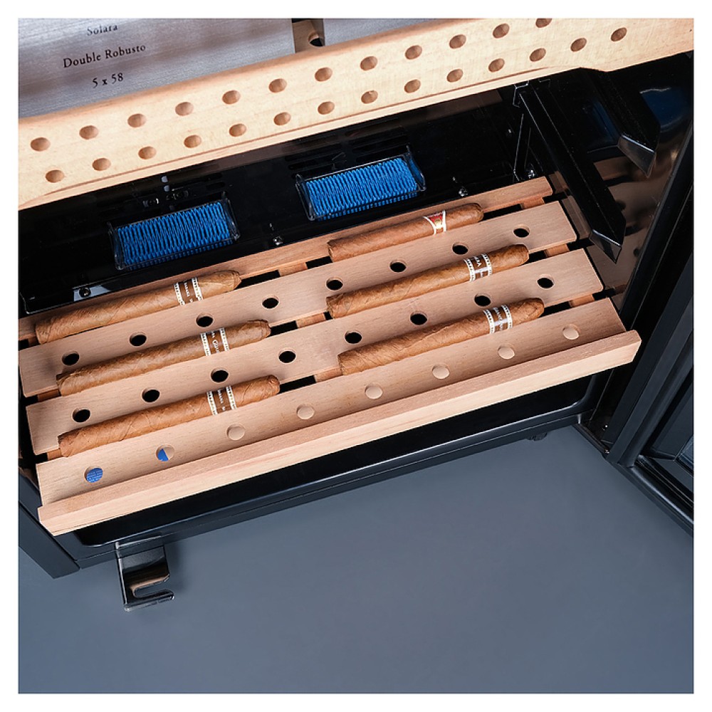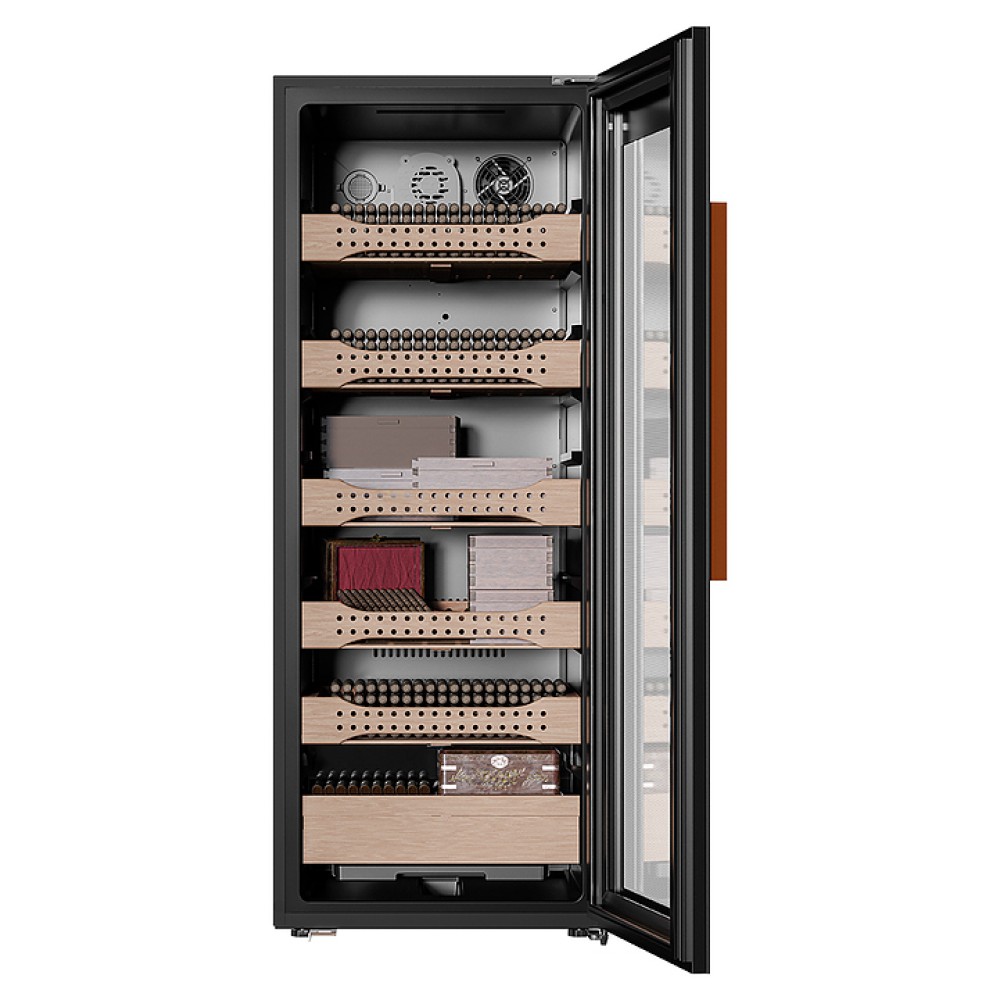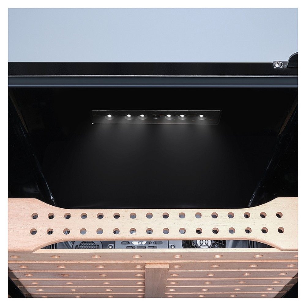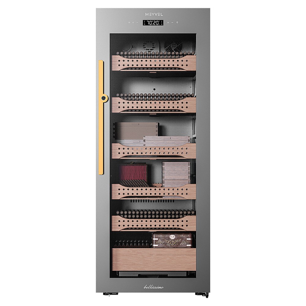 Шкаф MEYVEL MC-200BK (PRO) предназначен для хранения табачных изделий. Встроенный гигрометр и внутренняя подсветка упрощают мониторинг и обзор содержимого. Модель оснащена 1 температурной зоной, сенсорной панелью управления, дверью с магнитным уплотнителем для плотного закрывания и регулируемыми ножками. Дверца выполнена из двойного стекла с УФ-фильтром, ручка - из стали, внутренняя отделка - из высококачественного испанского кедра, который поддерживает оптимальный уровень влажности внутри камеры, что позволяет сохранять сигары в превосходном состоянии на протяжении длительного времени.