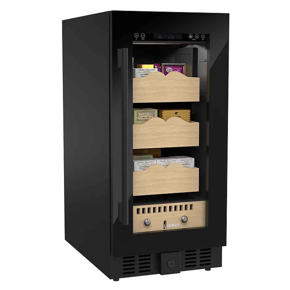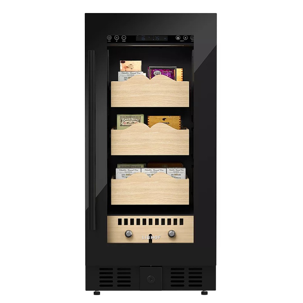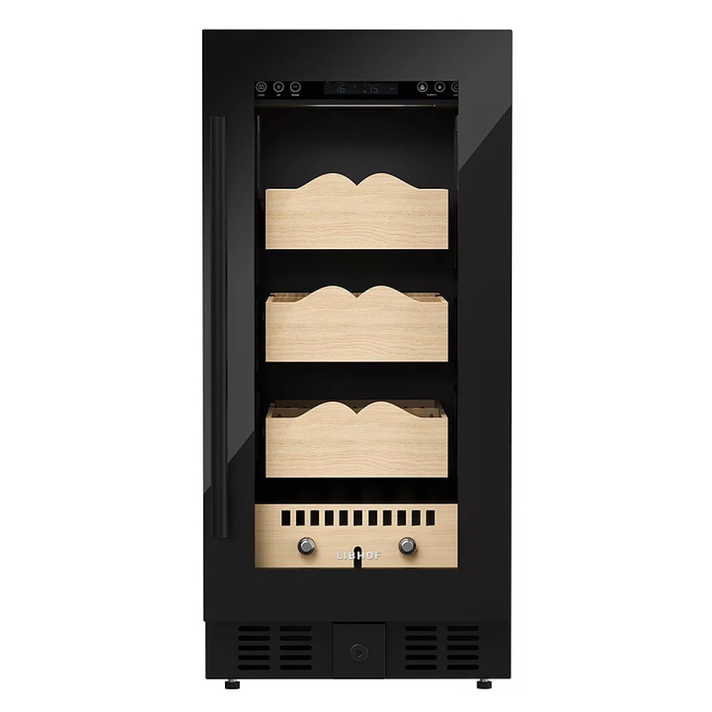 Сигарный шкаф Libhof BR-300 предназначен для хранения в оптимальных условиях и демонстрации табачных изделий в специализированных магазинах, гостиницах, складских помещениях, а также домашних условиях. Модель оснащена сенсорной панелью управления с дисплеем, распашной дверью и вентилятором. Корпус выполнен из металла, дверь - из антиультрафиолетового стеклопакета дымчатого цвета, полки - из натурального испанского кедра.