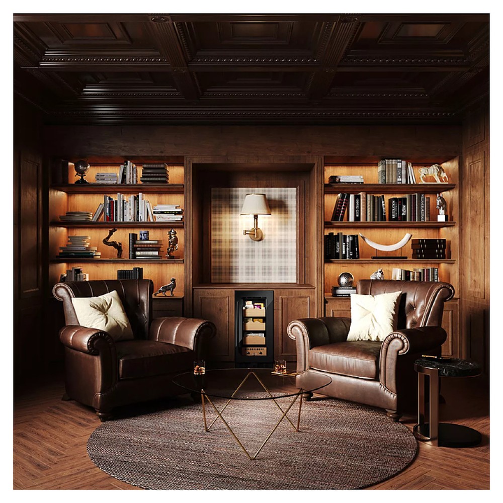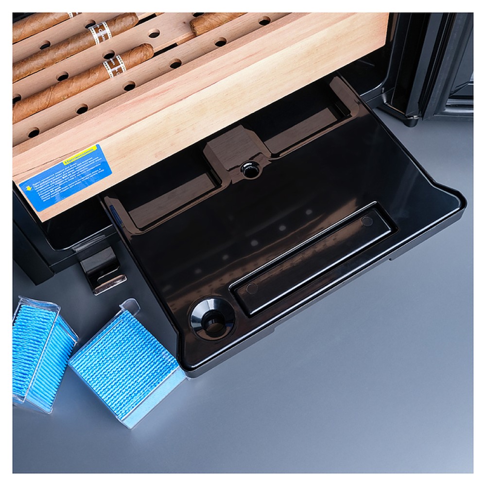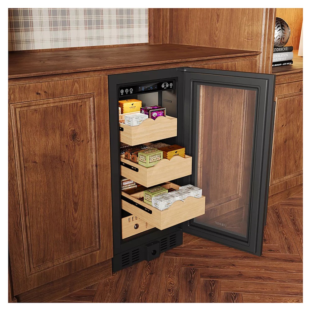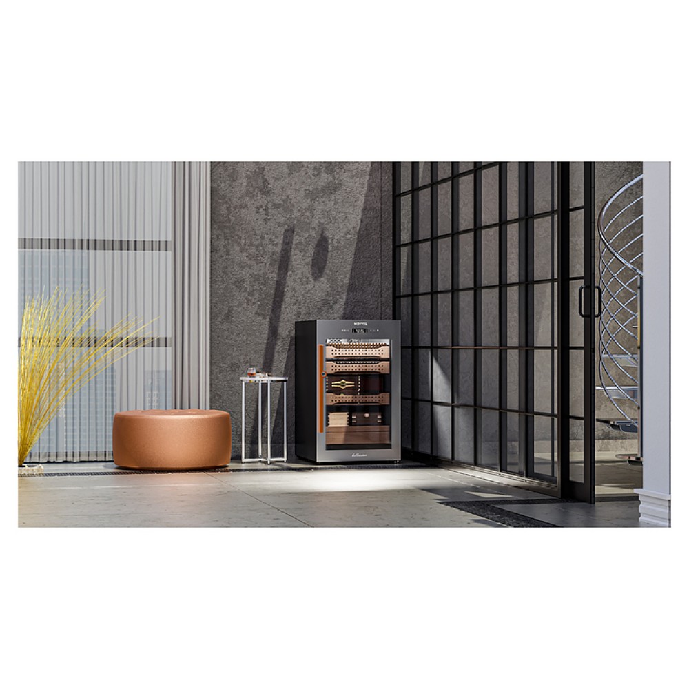 Сигарный шкаф Libhof BR-300 предназначен для хранения в оптимальных условиях и демонстрации табачных изделий в специализированных магазинах, гостиницах, складских помещениях, а также домашних условиях. Модель оснащена сенсорной панелью управления с дисплеем, распашной дверью и вентилятором. Корпус выполнен из металла, дверь - из антиультрафиолетового стеклопакета дымчатого цвета, полки - из натурального испанского кедра.