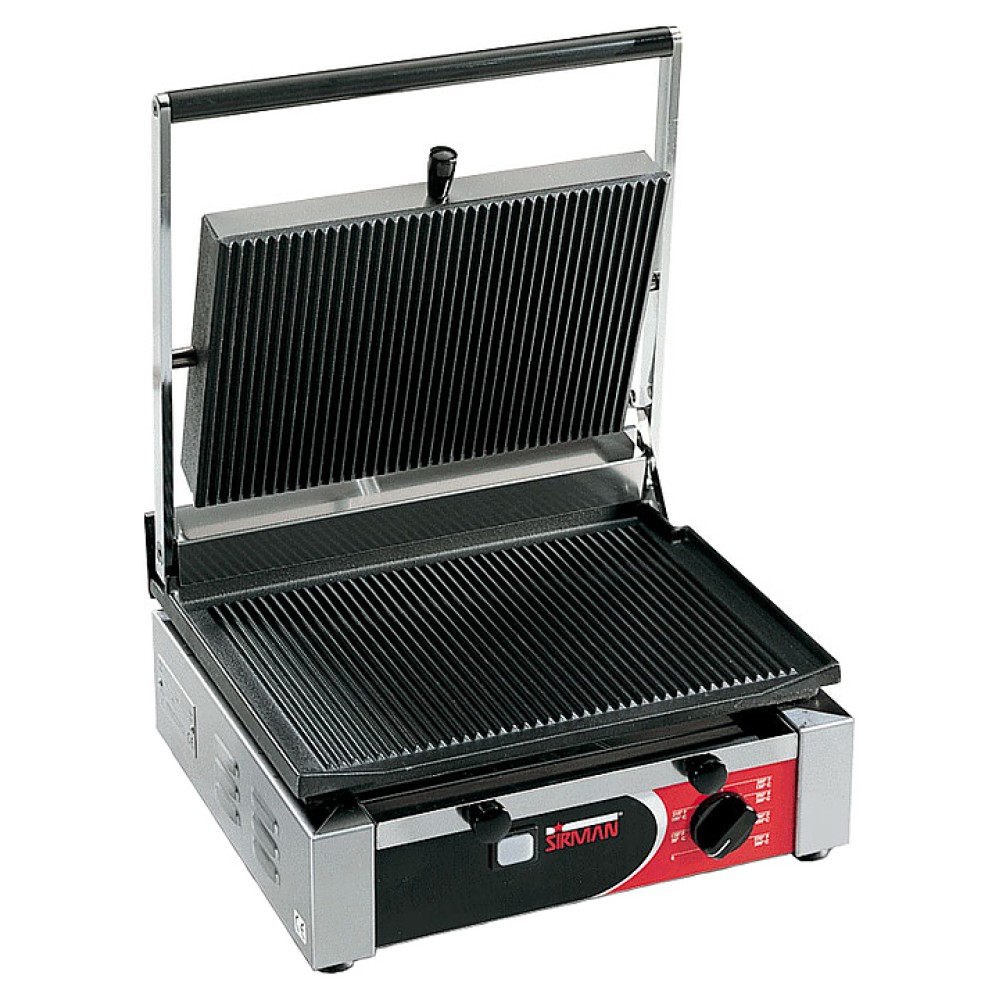 Прижимной гриль Sirman CORT R предназначен для жарки мяса, птицы, рыбы, овощей, а также для приготовления стейков, гамбургеров и горячих сэндвичей на предприятиях общественного питания и торговли. Модель оснащена регулируемым термостатом и армированными нагревательными элементами, которые прилегают вплотную к плите для оптимальной тепловой проводимости. Корпус изделия выполнен из нержавеющей стали, рабочая поверхность - из чугуна с антипригарным покрытием.