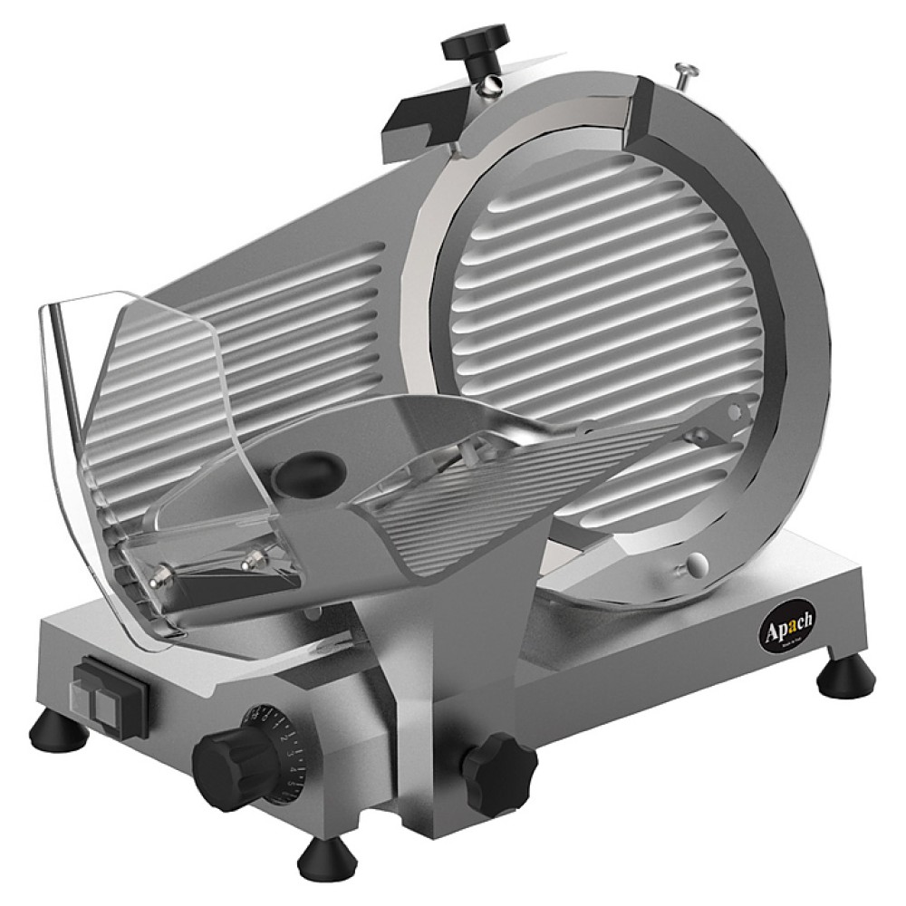 Слайсер Apach ASL300 предназначен для нарезки различных продуктов на предприятиях общественного питания и торговли. Модель оснащена вентилируемым мотором и встроенным затачивающим устройством. Корпус выполнен из литого анодированного алюминиевого сплава.