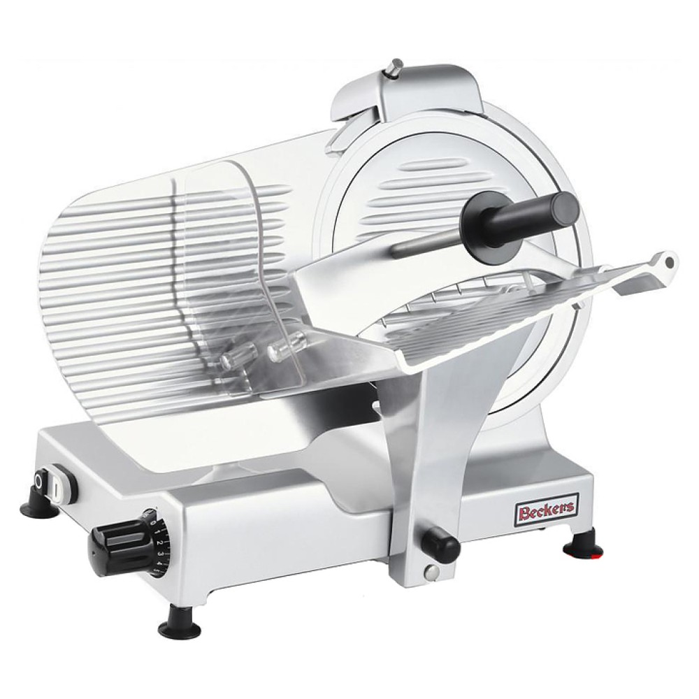 Полуавтоматический слайсер BECKERS BKL 250 предназначен для нарезки мяса, сыра, колбасных изделий и других продуктов питания на ровные и равные ломтики на предприятиях общественного питания и торговли. Модель оснащена встроенным затачивающимся устройством, благодаря чему персонал предприятия легко может поддерживать должный уровень остроты ножа, и удлиненной рукояткой для более удобного захвата со стороны оператора. Ножи выполнены из хромированной стали по новой технологии 3G от итальянского производителя Rasspe, корпус - из аннодированного полированного алюминия.