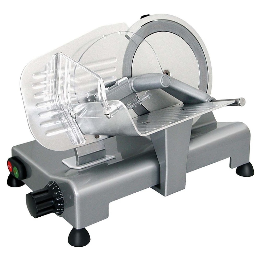 Профессиональный мотор с функцией принудительной вентиляции исключает возможность перегрева устройства, а также делает его работу практически бесшумной. Поддон для продуктов, перемычка для регулирования толщины среза и кольцо фиксации лезвия выполнены из алюминия, отполированного путем анодирования, что обеспечивает их гигиеническую чистоту и защиту от коррозии.