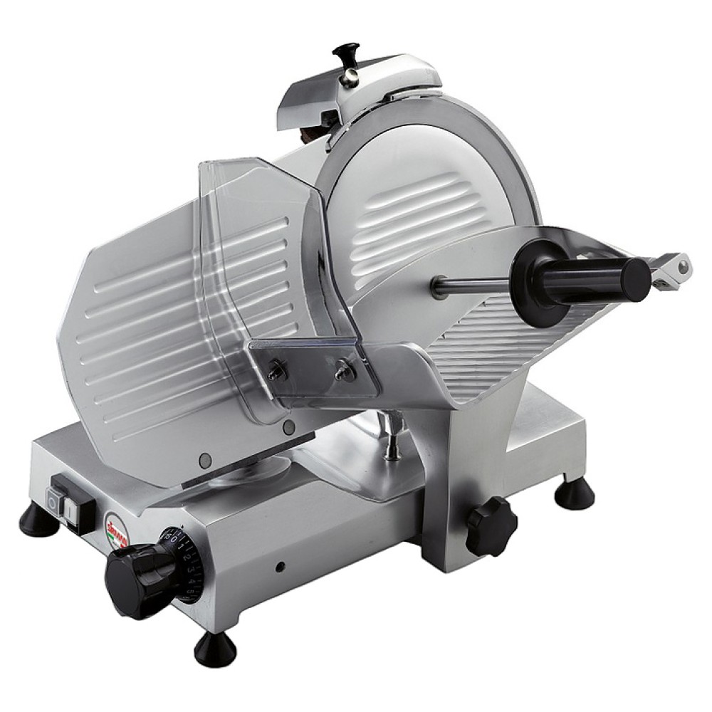 Слайсер Sirman Mirra 250 C предназначен для равномерной нарезки колбасы, хлеба и других продуктов. Модель подходит для использования в супермаркетах, ресторанах, кафе и других заведениях общепита. Аппарат оснащен проветриваемым двигателем и зубчатыми лезвиями.