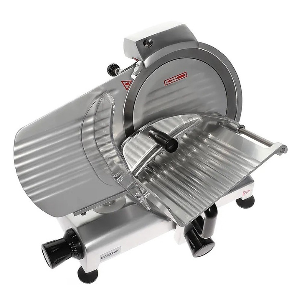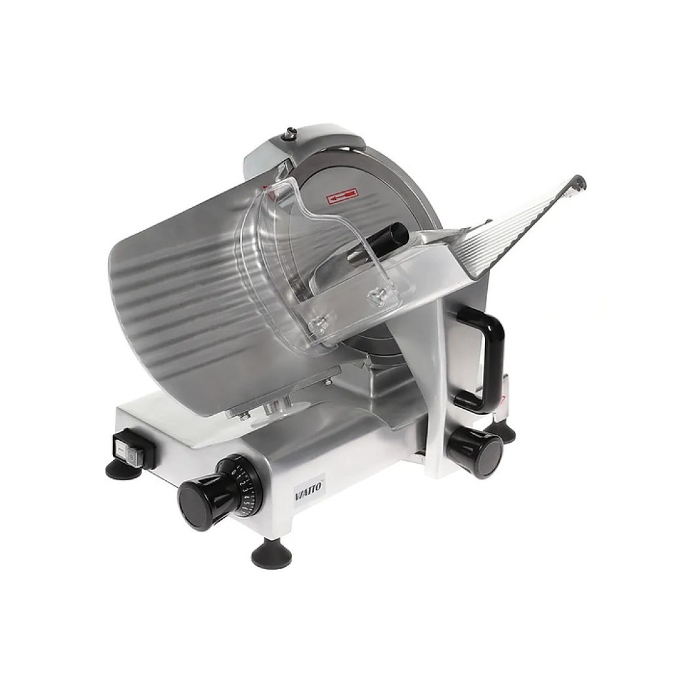 Слайсер VIATTO HBS-300А предназначен для нарезки тонкими одинаковыми ломтиками приготовленного мяса, колбасных изделий, сыра и овощей на предприятиях общественного питания и торговли. Модель оснащена затачивающим устройством, прикрепленным на каретку. Корпус выполнен из окрашенного алюминия.