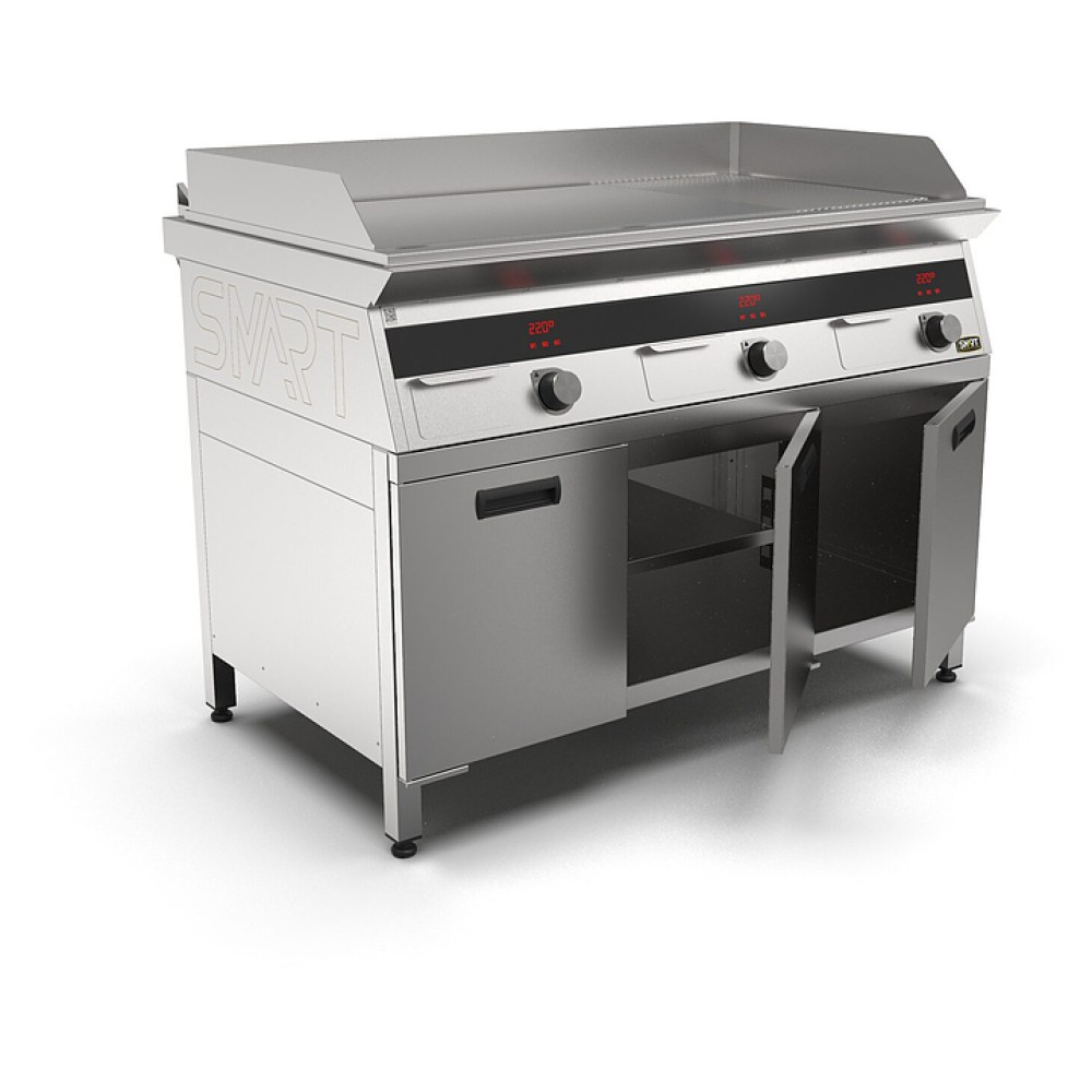 Индукционный гриль SMART INDUCTION G96-PPRN предназначен для приготовления мясных, рыбных и овощных блюд на предприятиях общественного питания и торговли. Модель оснащена электронно-механической панелью управления с цифровой индикацией и сенсорными кнопками, съемным жировым фильтром для отделения жира и влаги от поступающего внутрь аппарата воздуха, ящиком для сбора жира и регулируемыми по высоте ножками. Корпус и столешница выполнены из нержавеющей стали AISI430, рабочая поверхность и передняя панель - из нержавеющей стали.