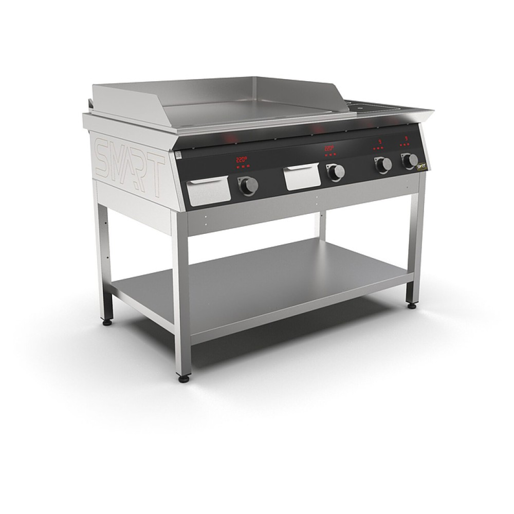 Комбинированная индукционная плита SMART INDUCTION K76-3PPKB предназначена для приготовления и быстрого разогрева блюд на предприятиях общественного питания и торговли. Модель оснащена электронно-механической панелью управления с цифровой индикацией и сенсорными кнопками, 3 съемными жировыми фильтрами для отделения жира и влаги от поступающего внутрь аппарата воздуха, 2 ящиками для сбора жира и регулируемыми по высоте ножками. Корпус и столешница выполнены из нержавеющей стали AISI430, рабочая поверхность плиты - из стеклокерамики, рабочая поверхность гриля - из нержавеющей стали, передняя панель имеет стойкое полимерное покрытие черного цвета.