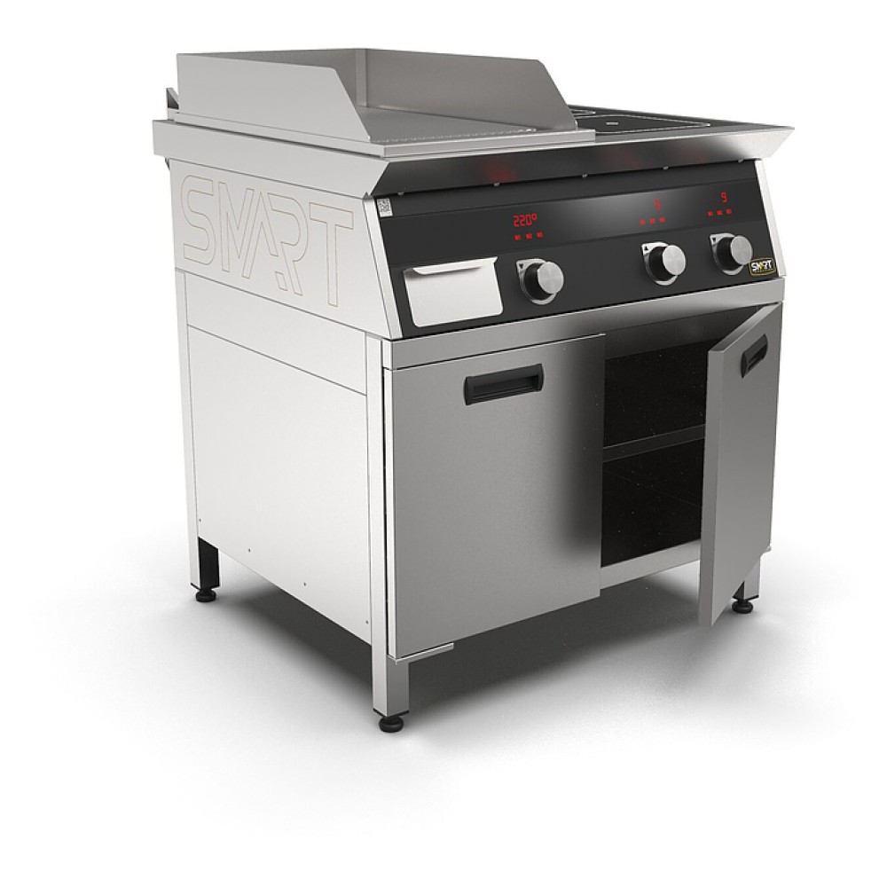 Комбинированная индукционная плита SMART INDUCTION K94-3RKB предназначена для приготовления и быстрого разогрева блюд на предприятиях общественного питания и торговли. Модель оснащена электронно-механической панелью управления с цифровой индикацией и сенсорными кнопками, 2 съемными жировыми фильтрами для отделения жира и влаги от поступающего внутрь аппарата воздуха, ящиком для сбора жира и регулируемыми по высоте ножками. Корпус и столешница выполнены из нержавеющей стали AISI430, рабочая поверхность плиты - из стеклокерамики, рабочая поверхность гриля - из нержавеющей стали, передняя панель имеет стойкое полимерное покрытие черного цвета.