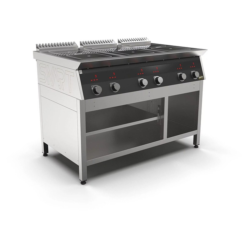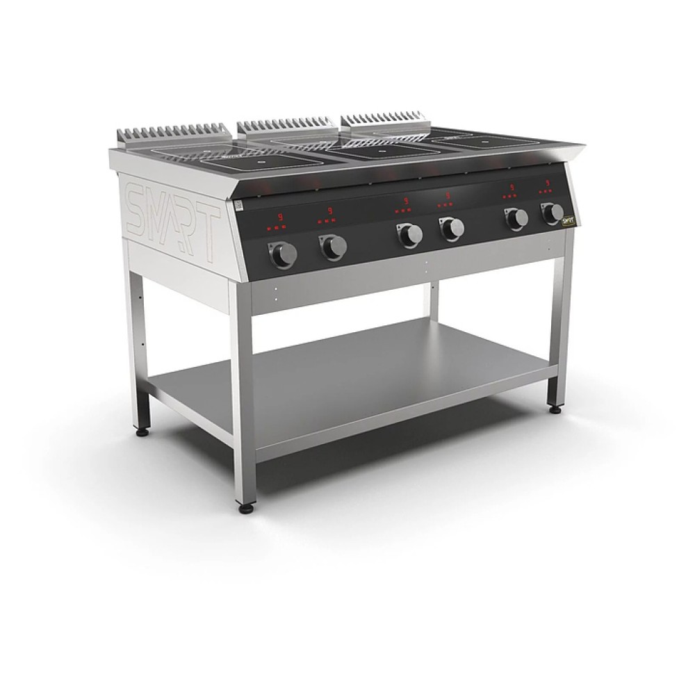 Индукционная плита SMART INDUCTION C96-35B предназначена для приготовления и быстрого разогрева блюд на предприятиях общественного питания и торговли. Модель оснащена электронно-механической панелью управления с индикацией, съемным жировым фильтром для отделения жира и влаги от поступающего внутрь аппарата воздуха и регулируемыми по высоте ножками. Корпус, столешница и воздуховод выполнены из нержавеющей стали AISI430, рабочая поверхность - из стеклокерамики, передняя панель имеет стойкое полимерное покрытие черного цвета.