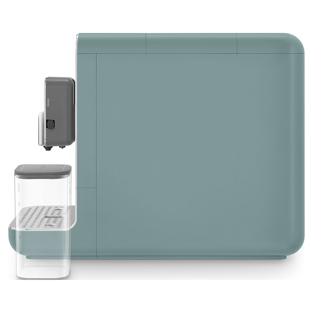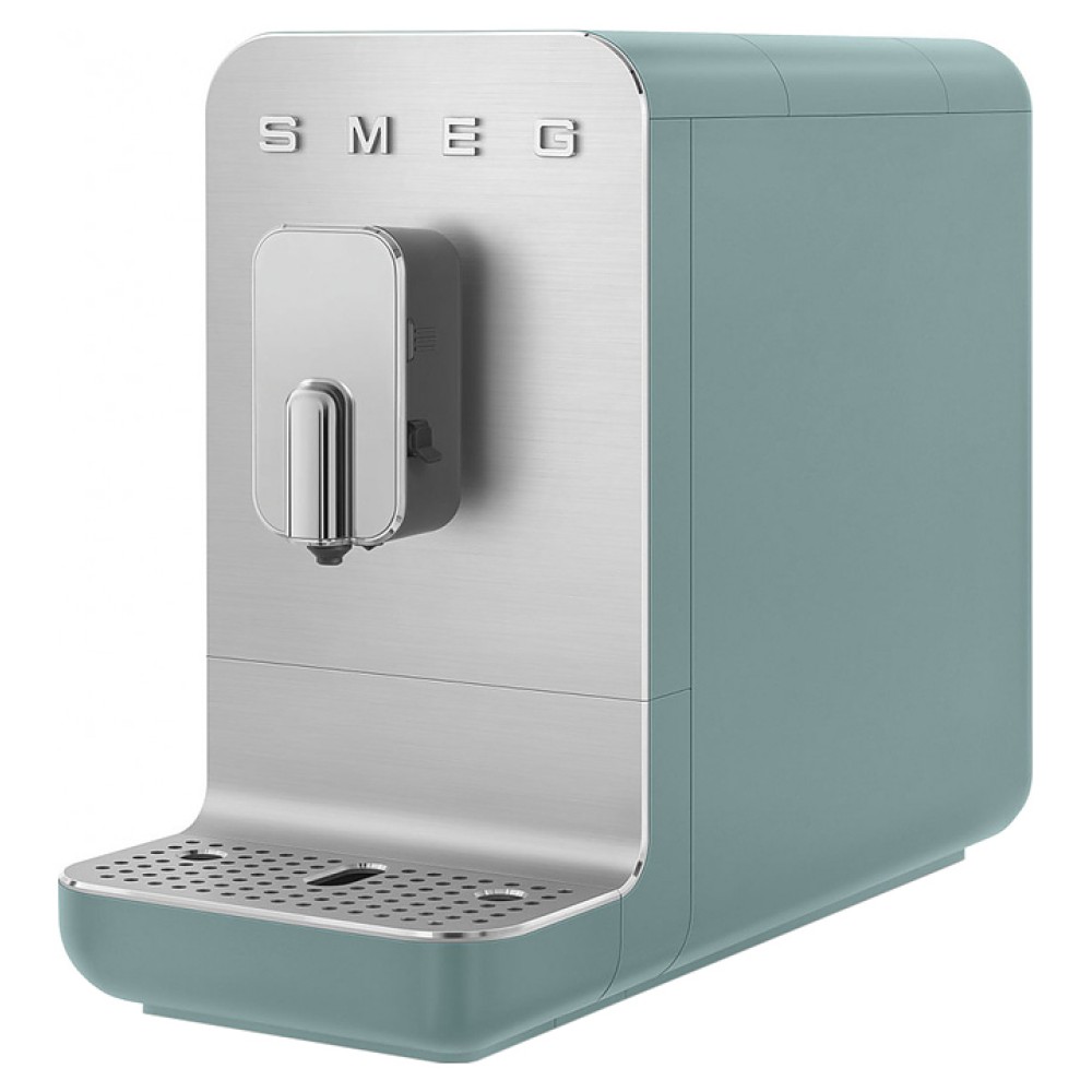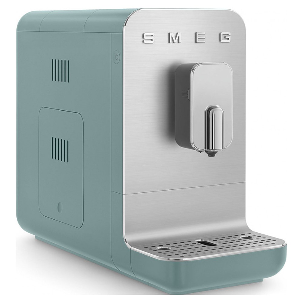 Автоматическая кофемашина SMEG BCC13EGMEU предназначена для приготовления эспрессо и кофейных напитков на его основе в частных домах и квартирах. Модель оснащена кабелем питания с евровилкой (Shuko) и панелью управления с нажимными кнопками. Корпус, основание подставки для чашек и кнопки выполнены из пластика с матовой внешней поверхностью, объемные накладные литеры логотипа - из пластика с серебристой поверхностью, фронтальные панели и поддон для чашек - из алюминия с сатинированной поверхностью и полированной кромкой, бойлер - из нержавеющей стали, резервуар для воды - из сополимера стирола и акрилонитрила (SAN) дымчато-серого оттенка, корпус диспенсера и рукоятка резервуара - из серого пластика.