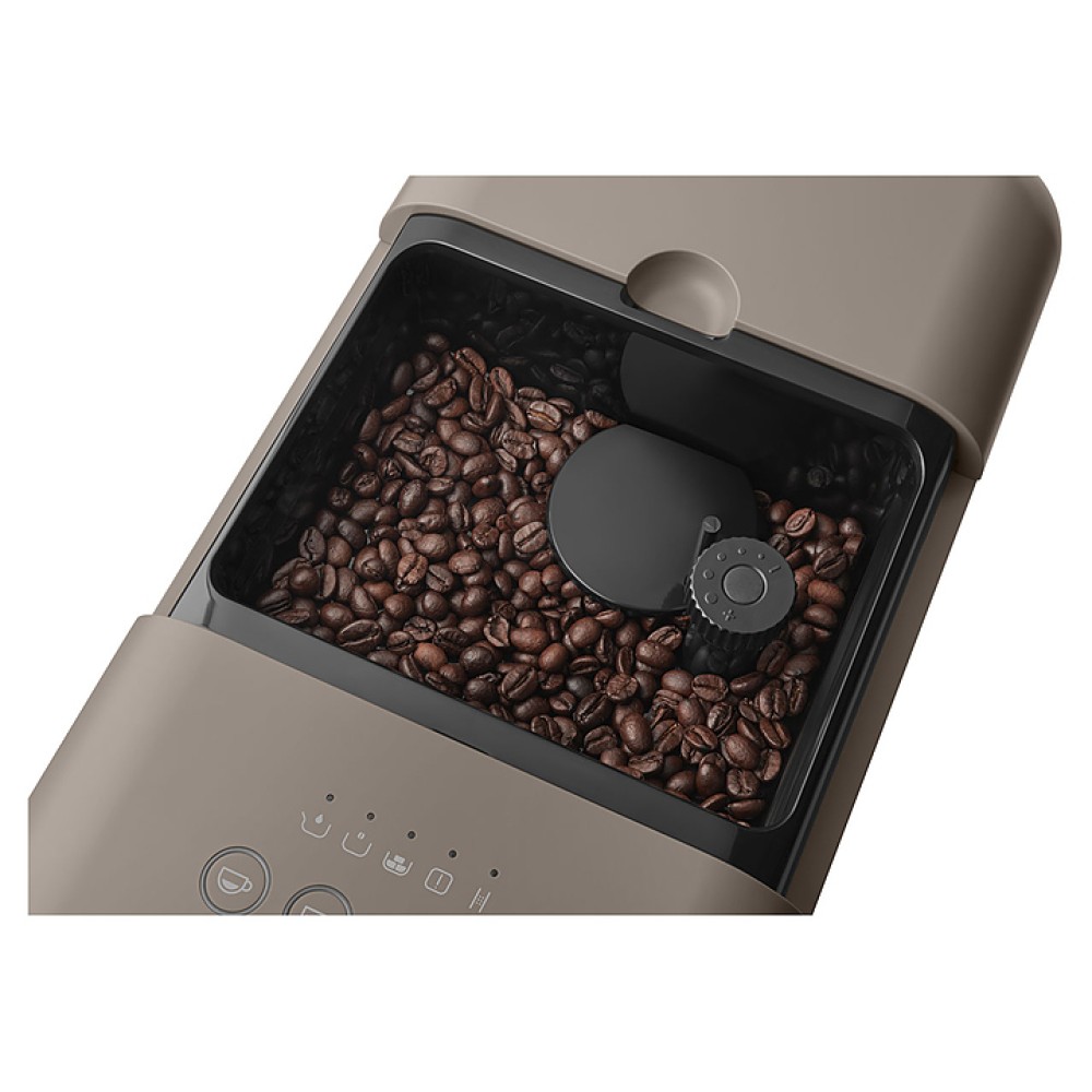 Кофемашина Smeg BCC02TPMEU предназначена для приготовления эспрессо и кофейных напитков на его основе в частных домах и квартирах. Модель выполнена в стиле 50-х годов. Корпус изготовлен из цветного матового пластика, фронтальная панель и решетка поддона для капель - из матового алюминия с полированной рамкой, жернова кофемолки и трубка подачи пара - из нержавеющей стали.