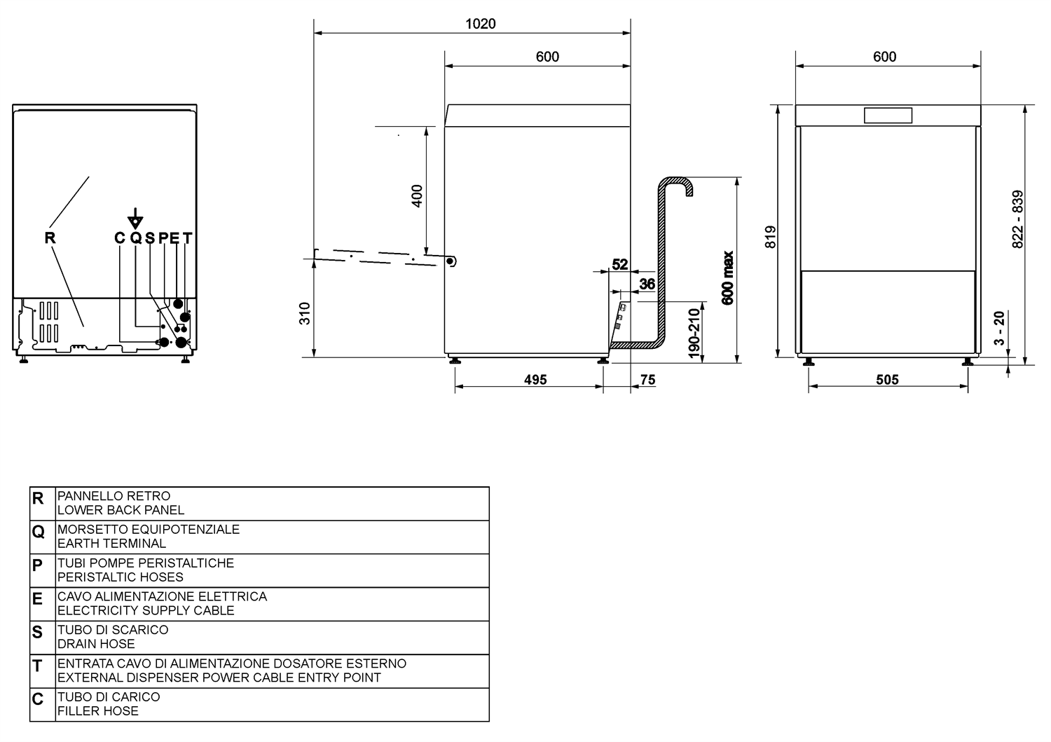 | Высота822 мм | Глубина600 мм | Ширина600 мм |