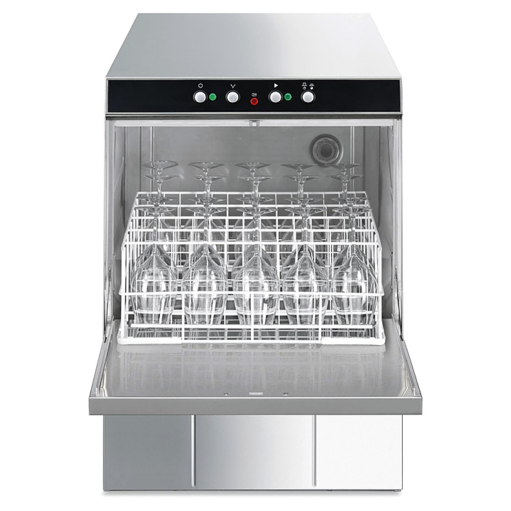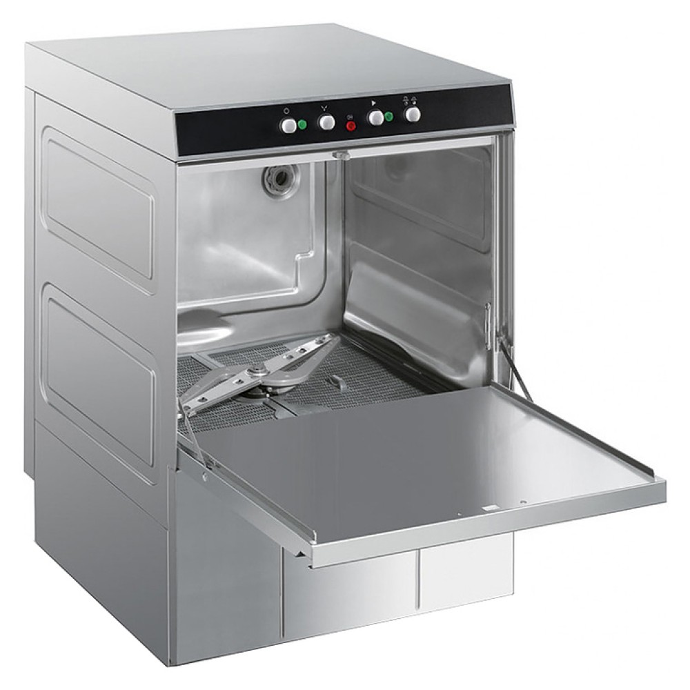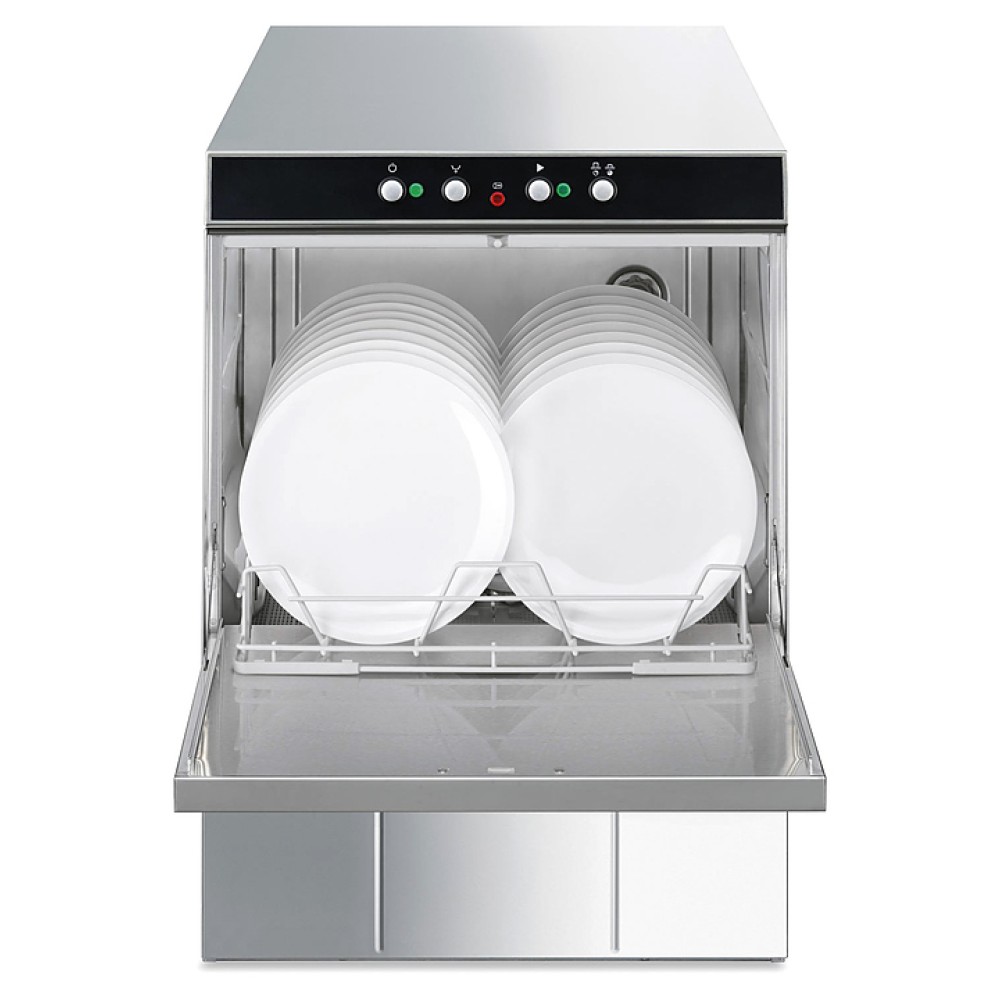 Посудомоечная машина с фронтальной загрузкой Smeg SPD500S серии Ecoline используется на предприятиях общественного питания и торговли для мойки столовых приборов, тарелок, стаканов, чашек и другой посуды. Модель оснащена электромеханической панелью управления и регулируемыми по высоте ножками. Корпус выполнен из нержавеющей стали AISI 304, моющий и ополаскивающий рукав из нержавеющей стали, задняя панель из гальванизированной стали, фильтр моечного бака из пластика.